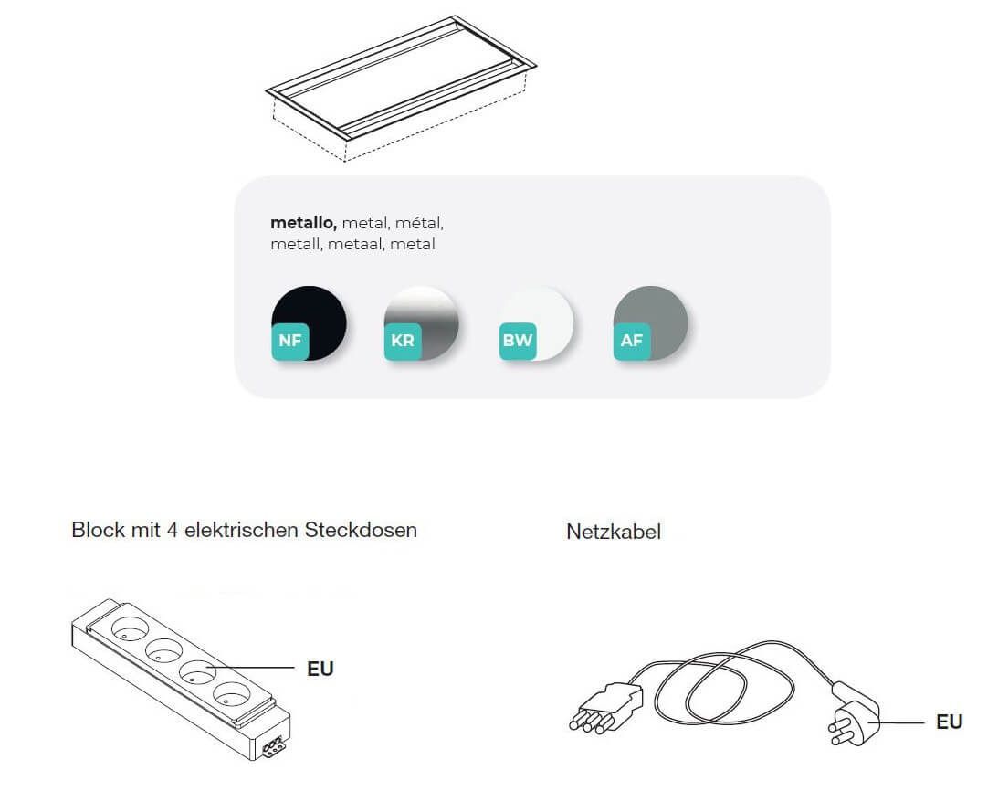 ohne Elektrifizierung, 2 x Elektrifizierung: Weiß (BW), 2 x Elektrifizierung: Aluminium (AF), 2 x Elektrifizierung: Schwarz (NF)