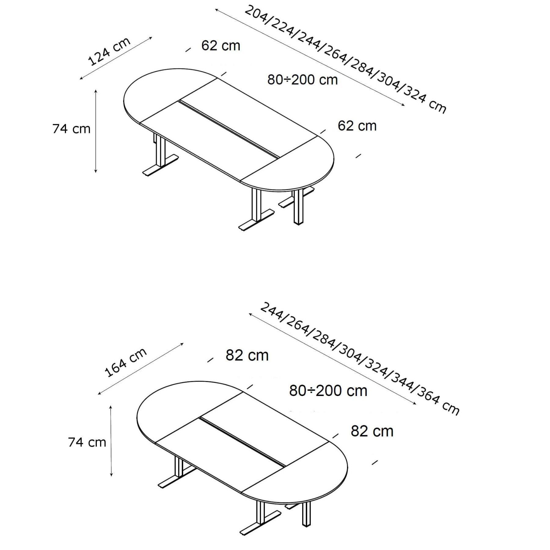 Konferenztisch Winglet oval 204-324 x 124/164 x 74 cm