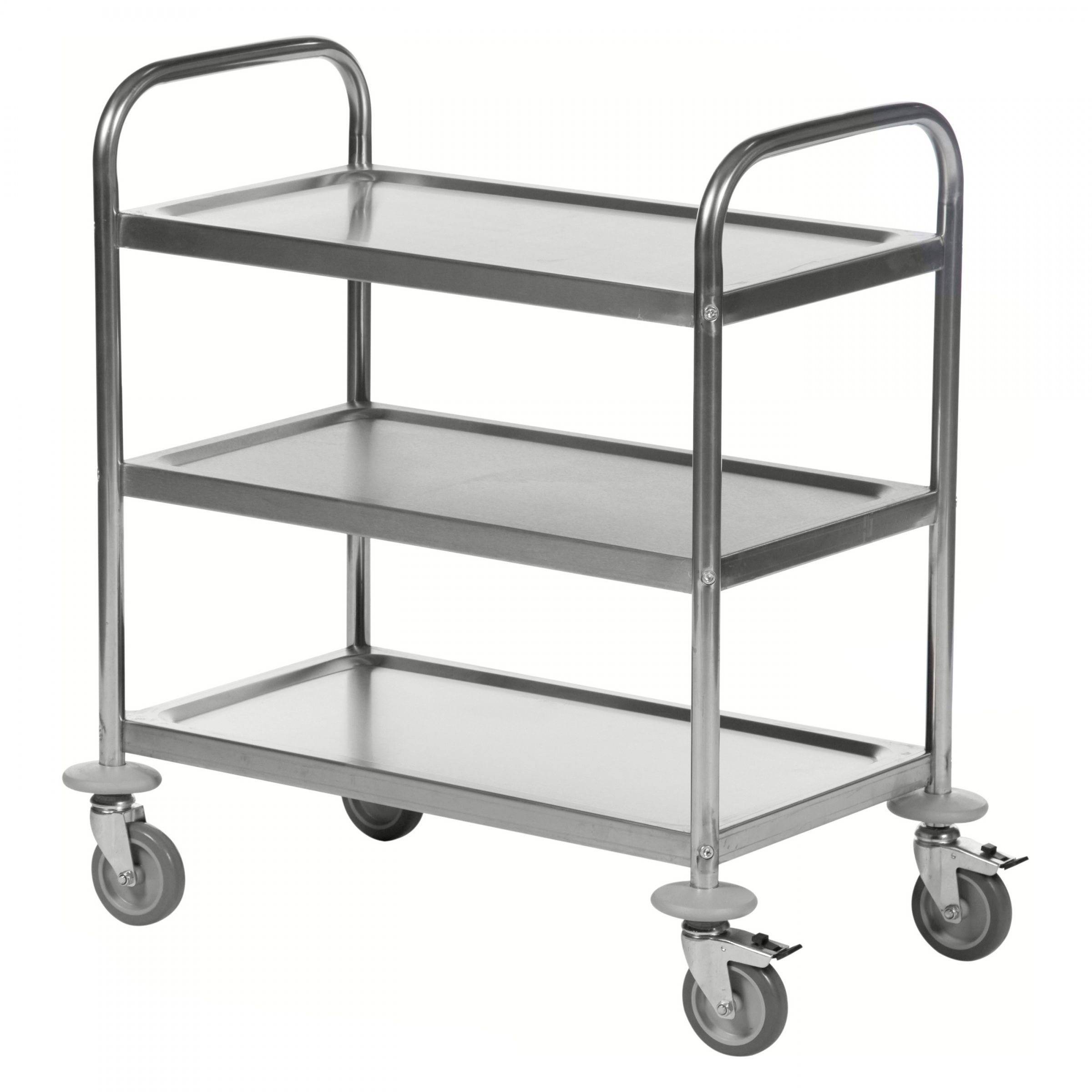 Kongamek Edelstahl- Tischwagen rostfrei mit 3 Boeden 685x380mm mit Polyurethanbereif