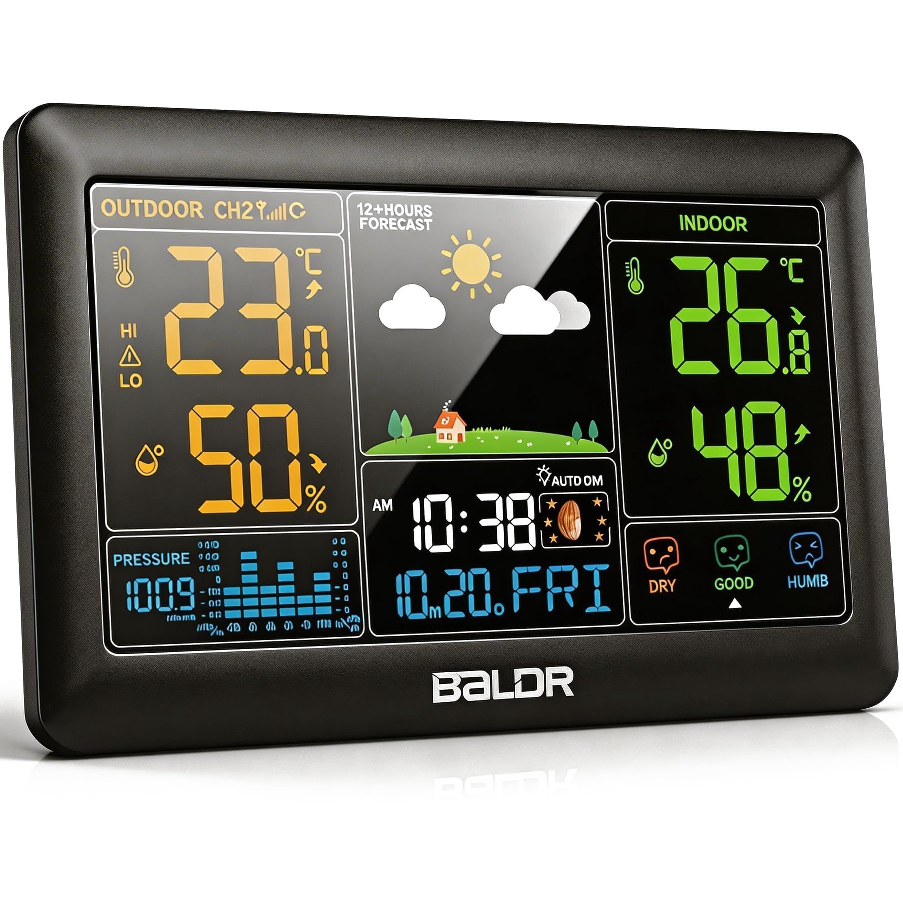 Konsen Funk Wetterstation 7,4 Zoll Farbdisplay DCF Uhr Außensensor
