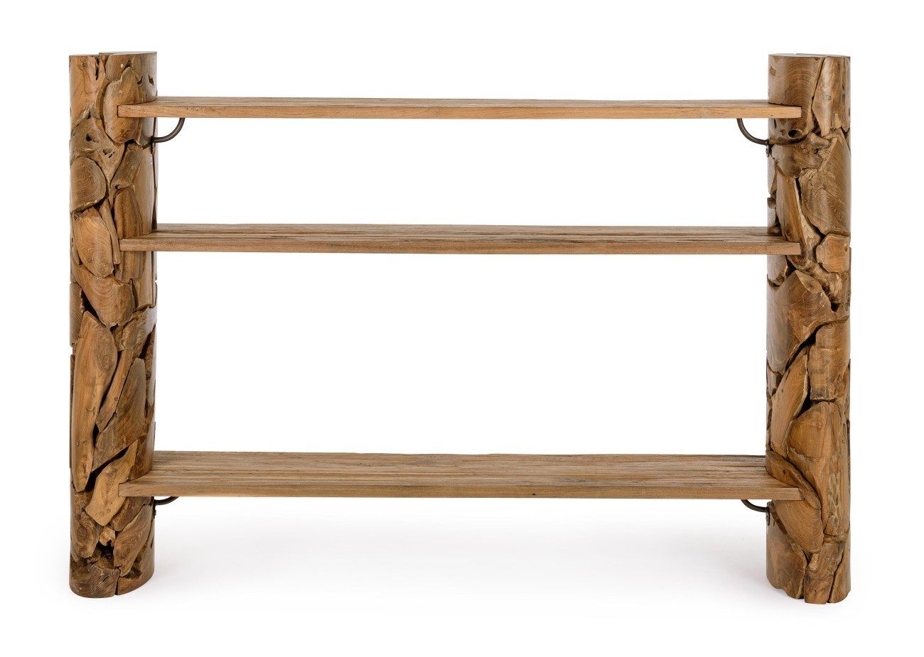 Konsole Arwood aus Teakholz, Retro Chic Design, naturbraun, mit 3 Einlegeböden