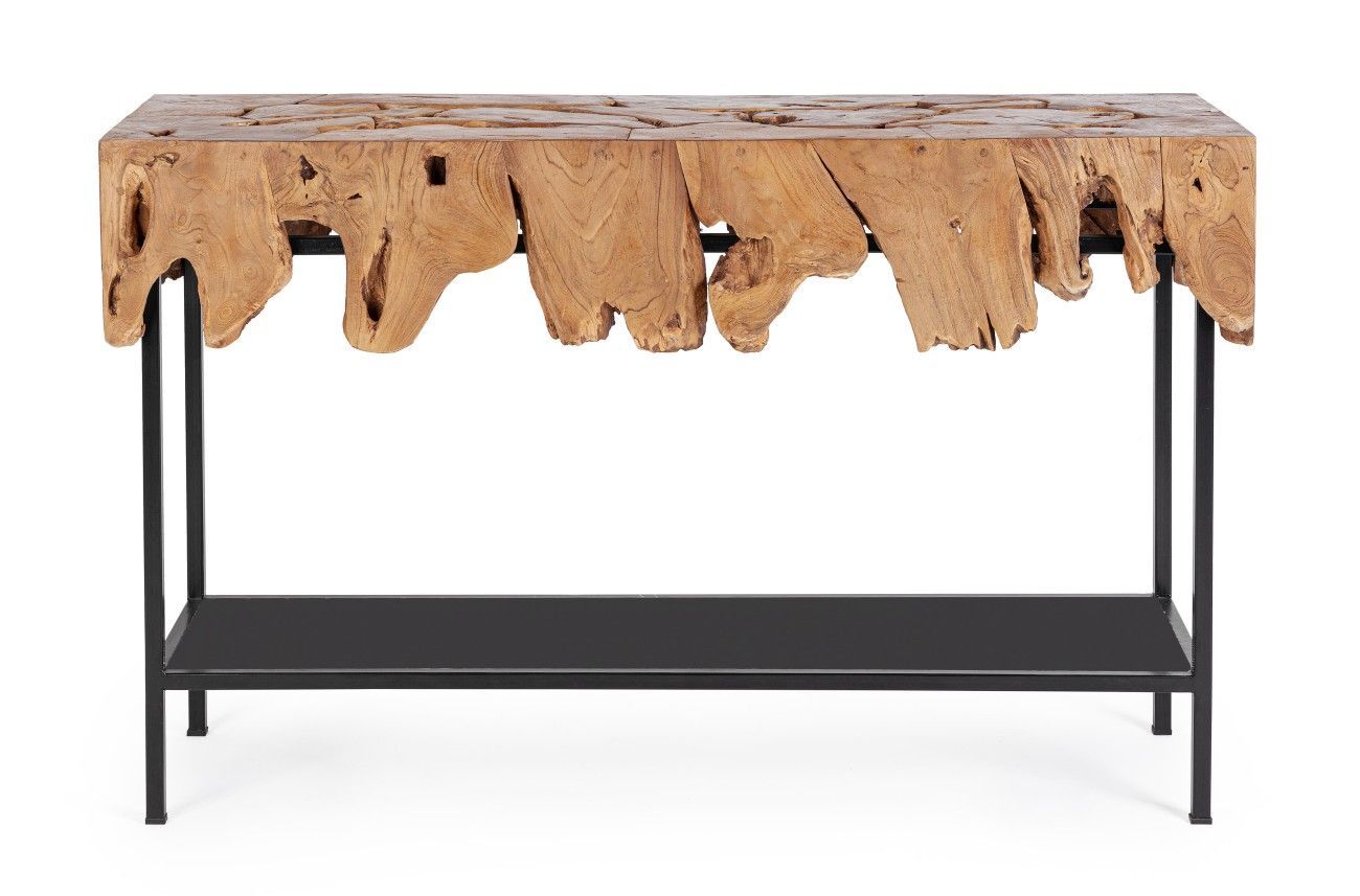 Konsole Grenada aus Teakholz, modernes Design, Natur, pulverbeschichtetes Metallgeste