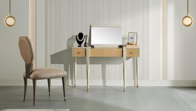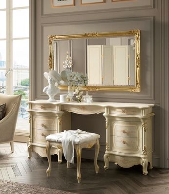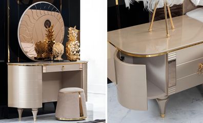 Beiger Schminktisch Designer Frisiertisch Kosmetiktisch Konsole Spiegel
