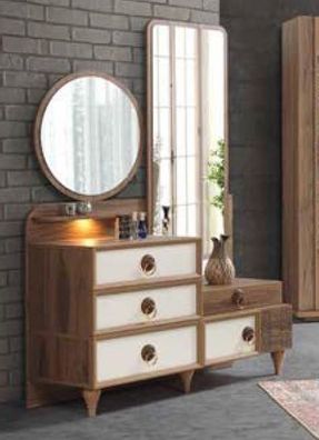Beiger Schminktisch Holz Kosmetiktisch Designer Konsole Spiegel 2tlg