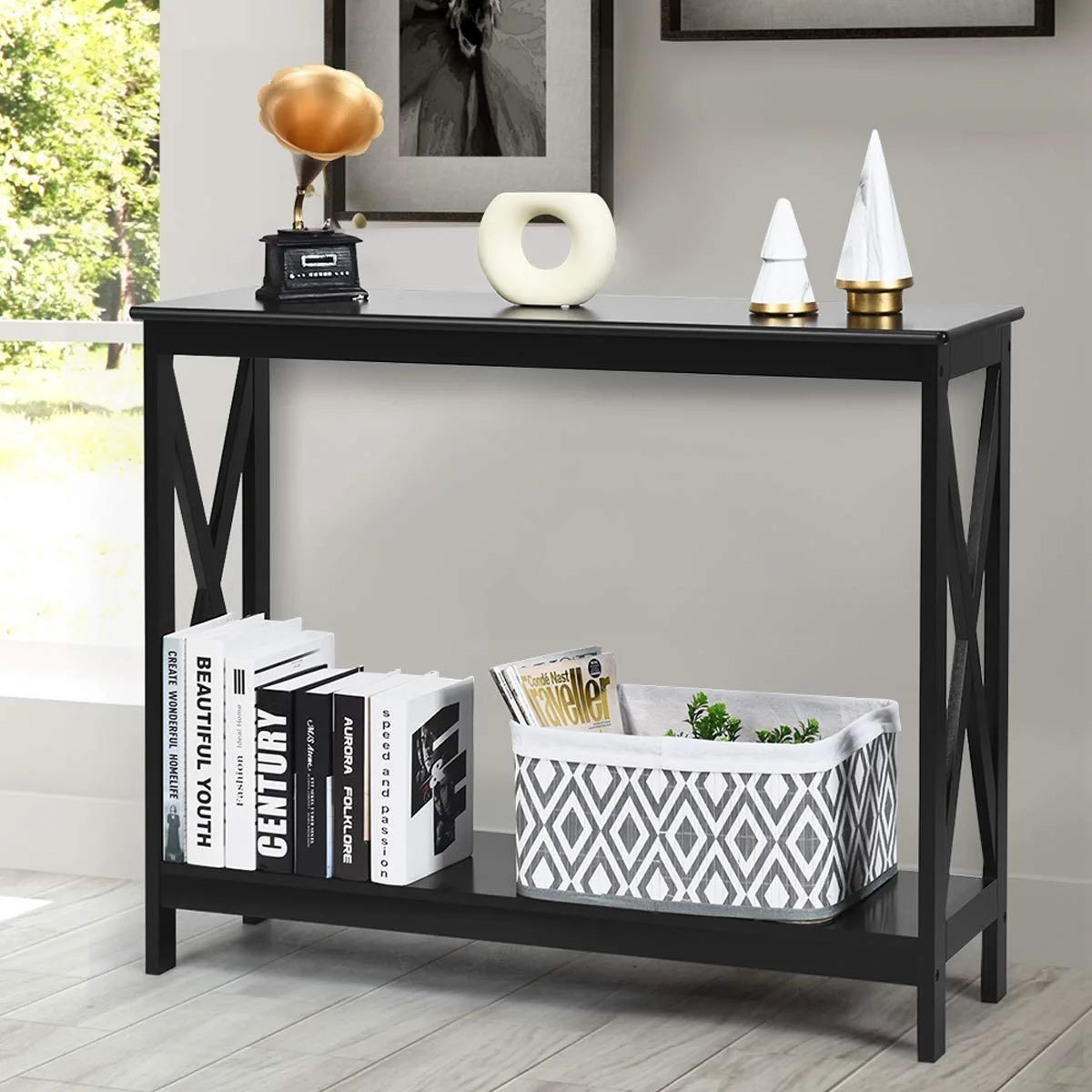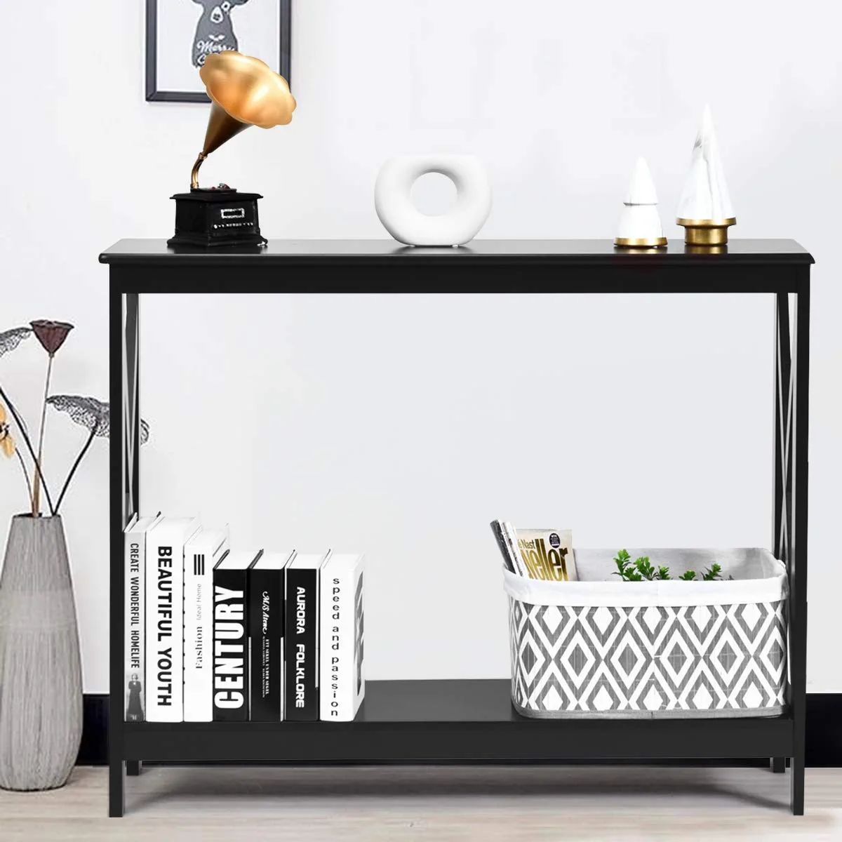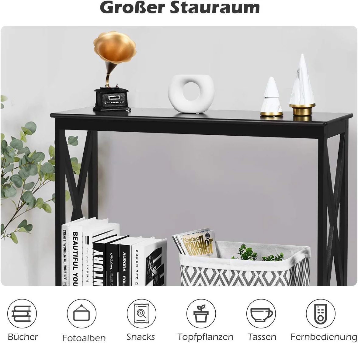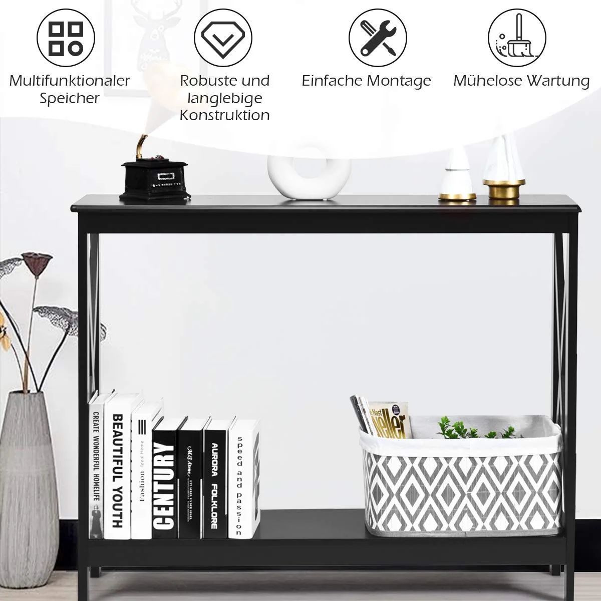 • Konsolentisch Flurtisch mit Schublade und 2-stufigen Ablagefächern Beistelltisch