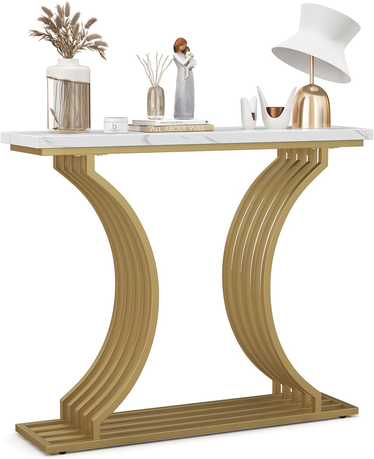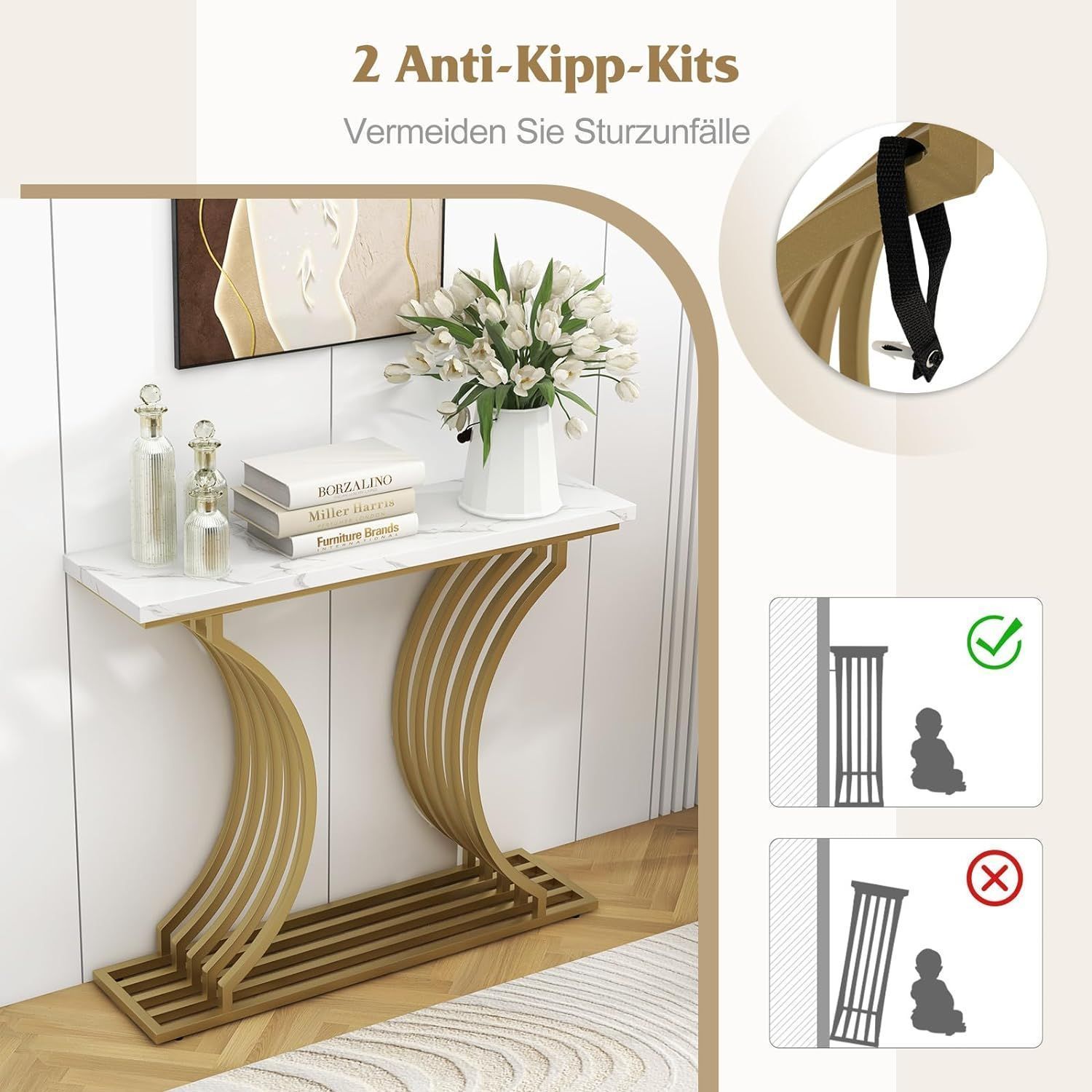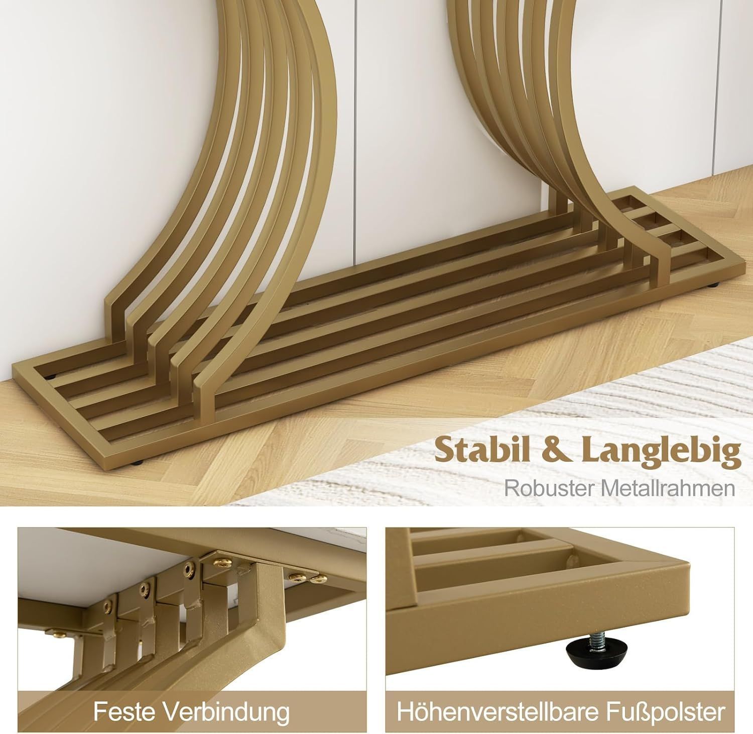 Konsolentisch Gold, Eingangstisch marmor optick mit weißer Tischplatte, Flurtisch
