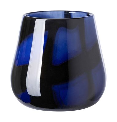 • Fink MARLY, Glasvase, Windlicht, Glas, glatt, blau , schwarz, L. 13.5 cm, B. 13.5