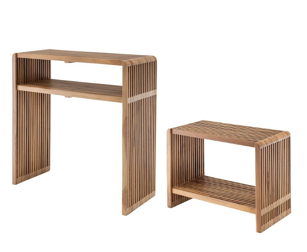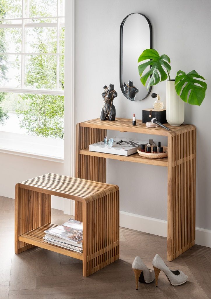 Konsolentisch & Sitzbank "Woody" recyceltes Teakholz