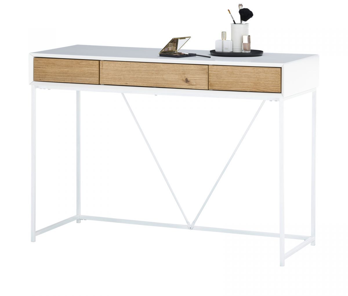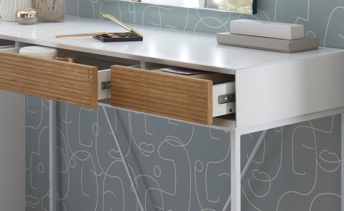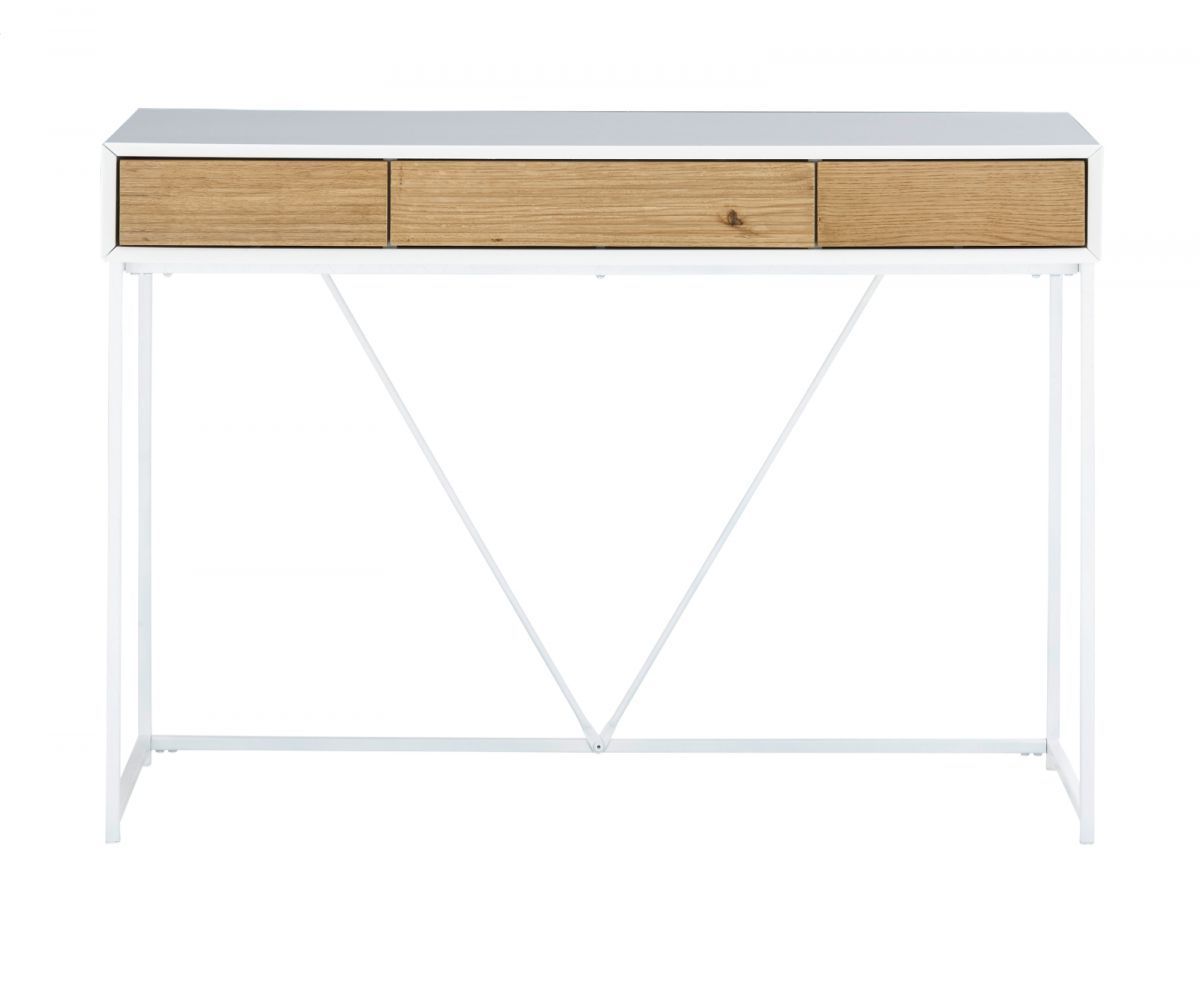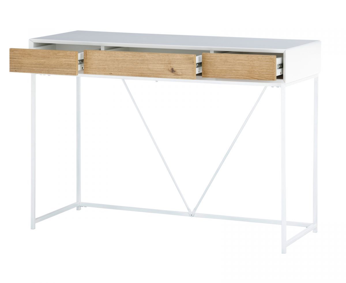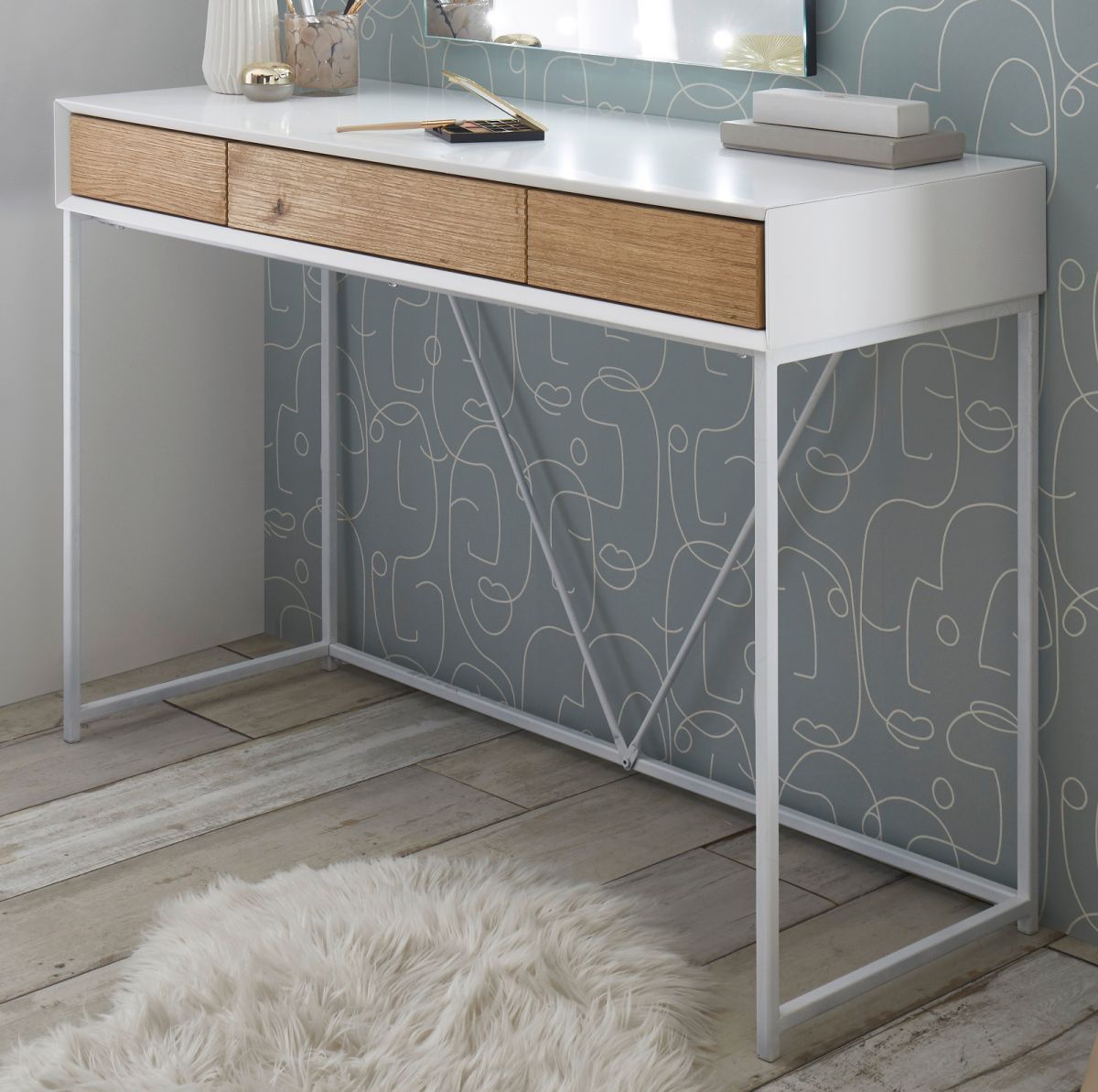Konsolentisch weiß lackiert Eiche massiv mit 2 x Schublade Wandtisch Laptoptisch Riad