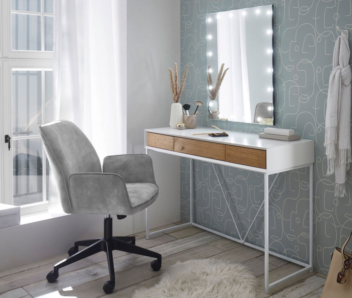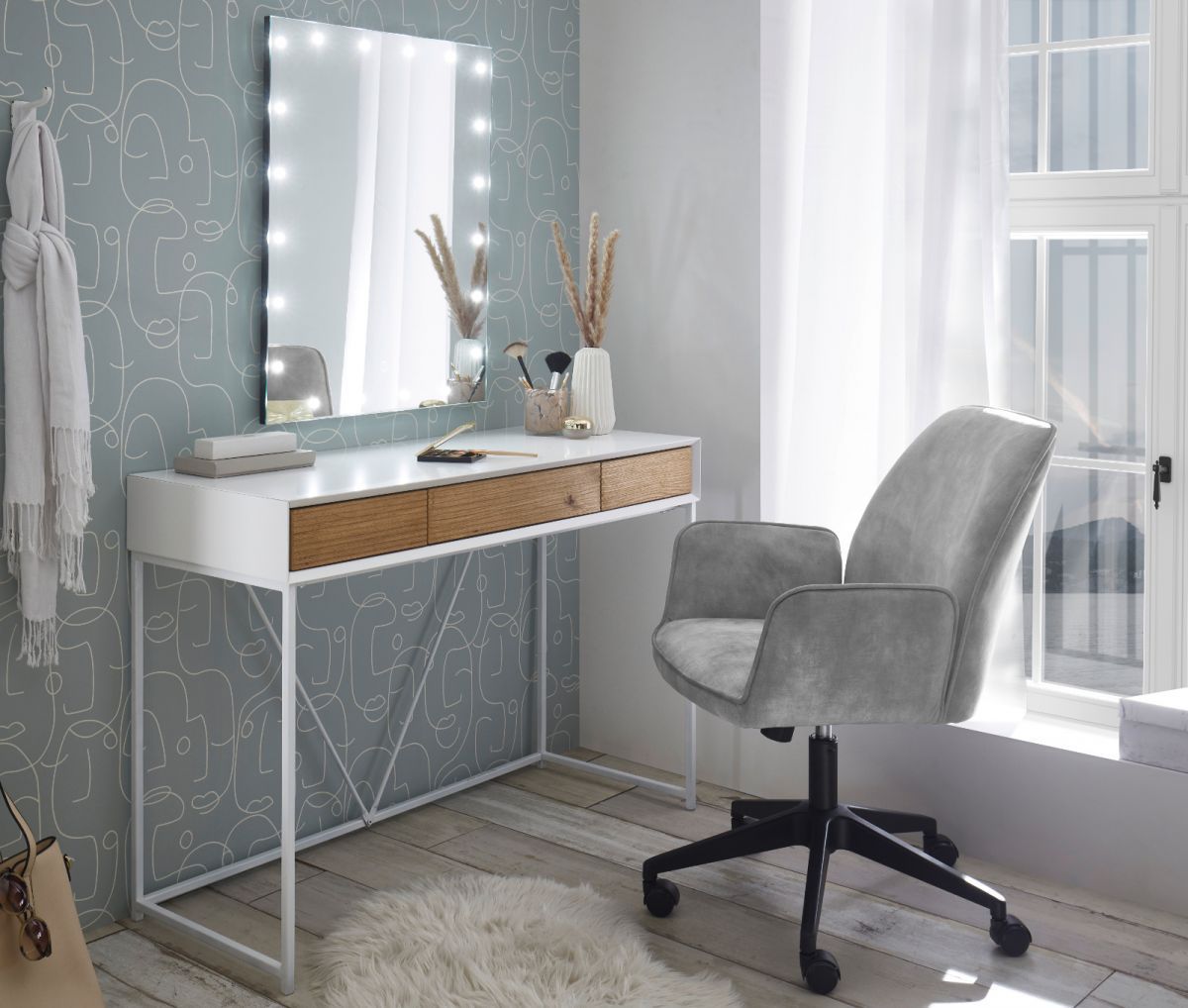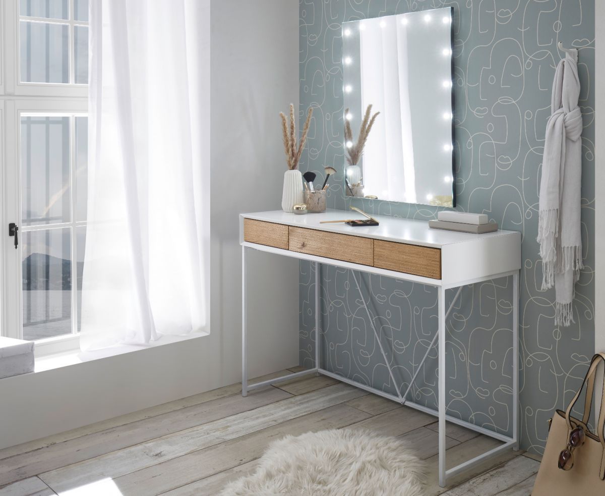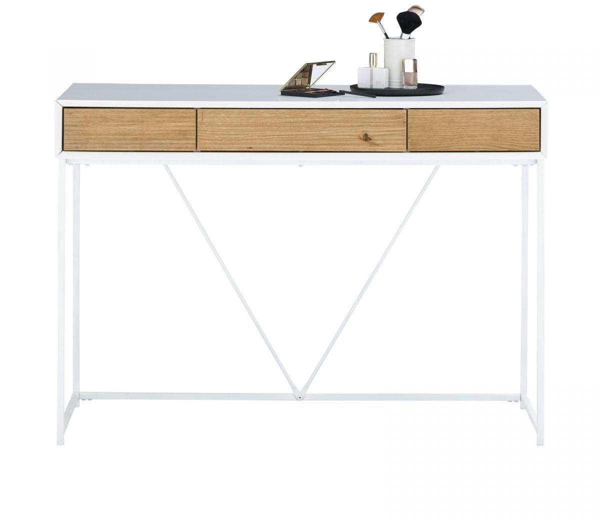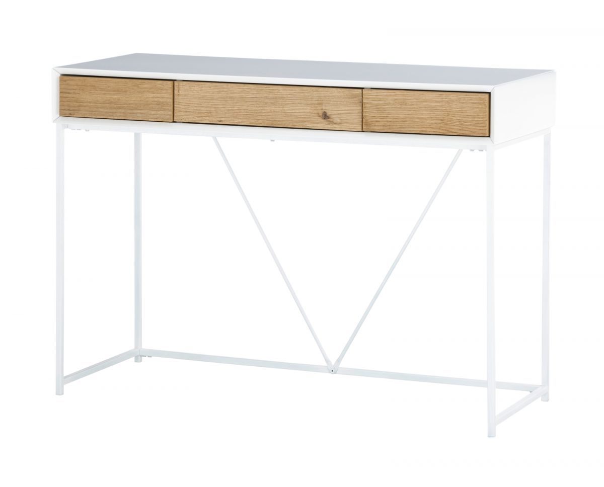 Konsolentisch weiß lackiert Eiche massiv mit 2 x Schublade Wandtisch Laptoptisch Riad