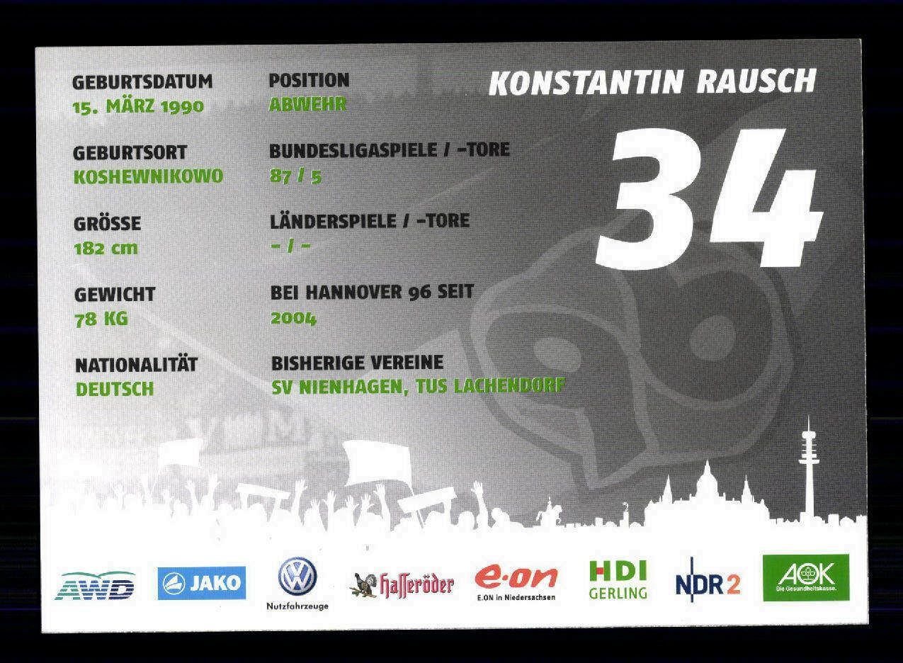 Konstantin Rausch Autogrammkarte Hannover 96 2011-12 Original Signiert