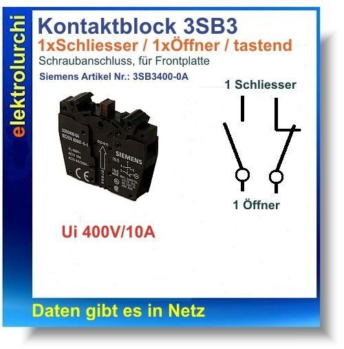 Siemens Kontaktelement 3SB3400-0A, 1xNO, 1xNC Frontbefestigung Siemens, 1St