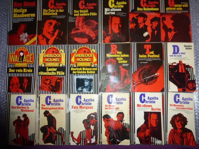 Konvolut 18 Scherz Krimis, verschiedene Autoren, gar nicht Fein 1.) Rex Stout, Blutige Blaubeeren 2.) Agatha Christie, Die Tote in der Bibliothek 3.) Agatha Christie, Der Unfall und andere Fälle 4.) Agatha Christie, Mit offenen Karten 5.) Agatha Christie, Das Eulenhaus 6.) John Sherwood, Gauner will
