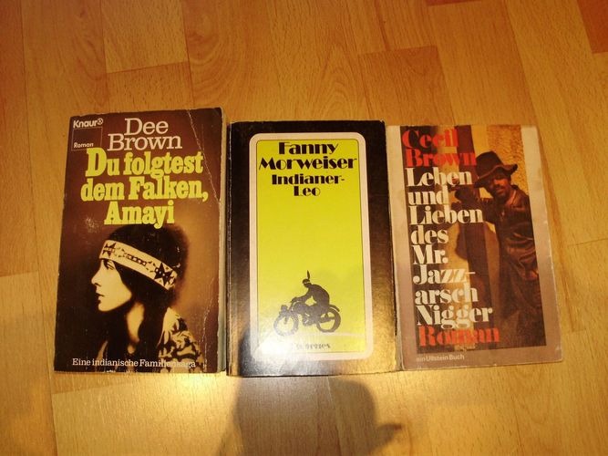 3 x TB Fanny Morweiser: Indianer Leo Dee Brown: Du folgtest dem Falken Amayi Cecil Brown: Leben und Liben des Jazzarsch Nigger Versch. Zustände Überweisungen bitte innerhalb 8 Tagen