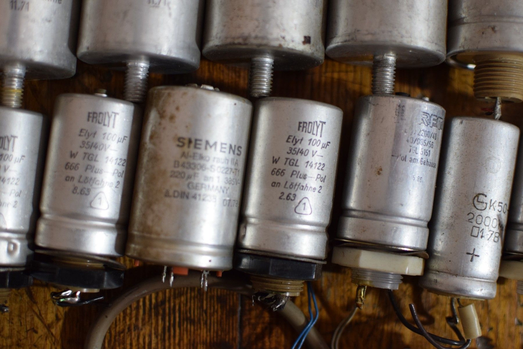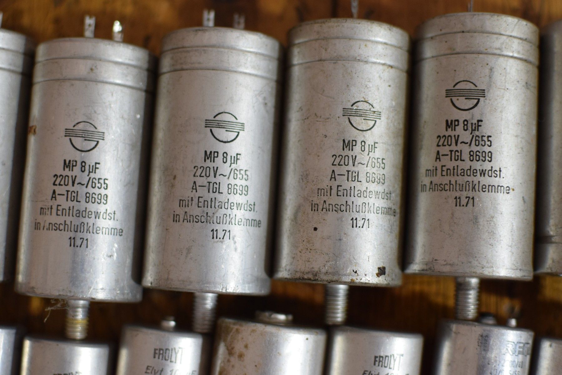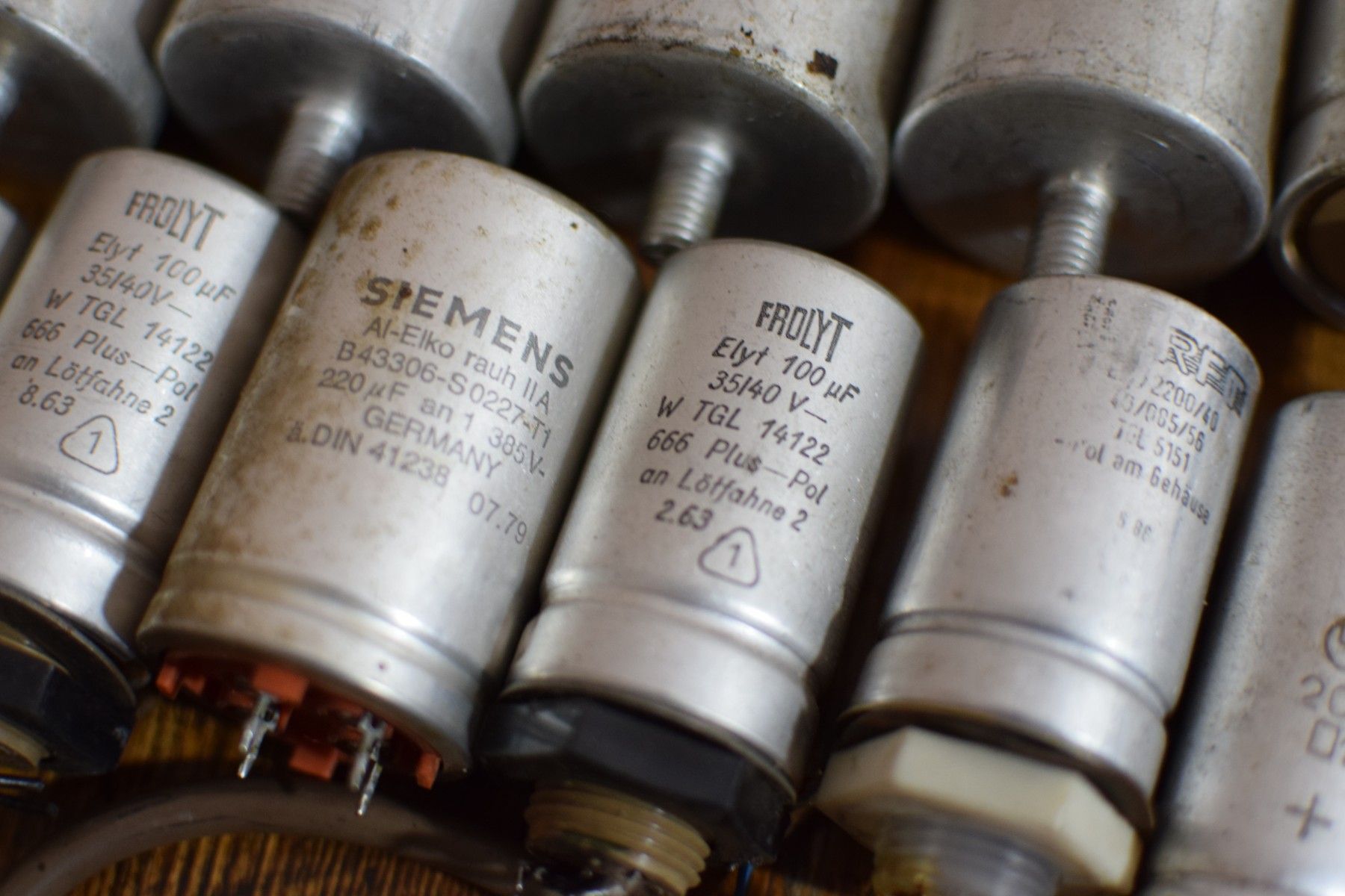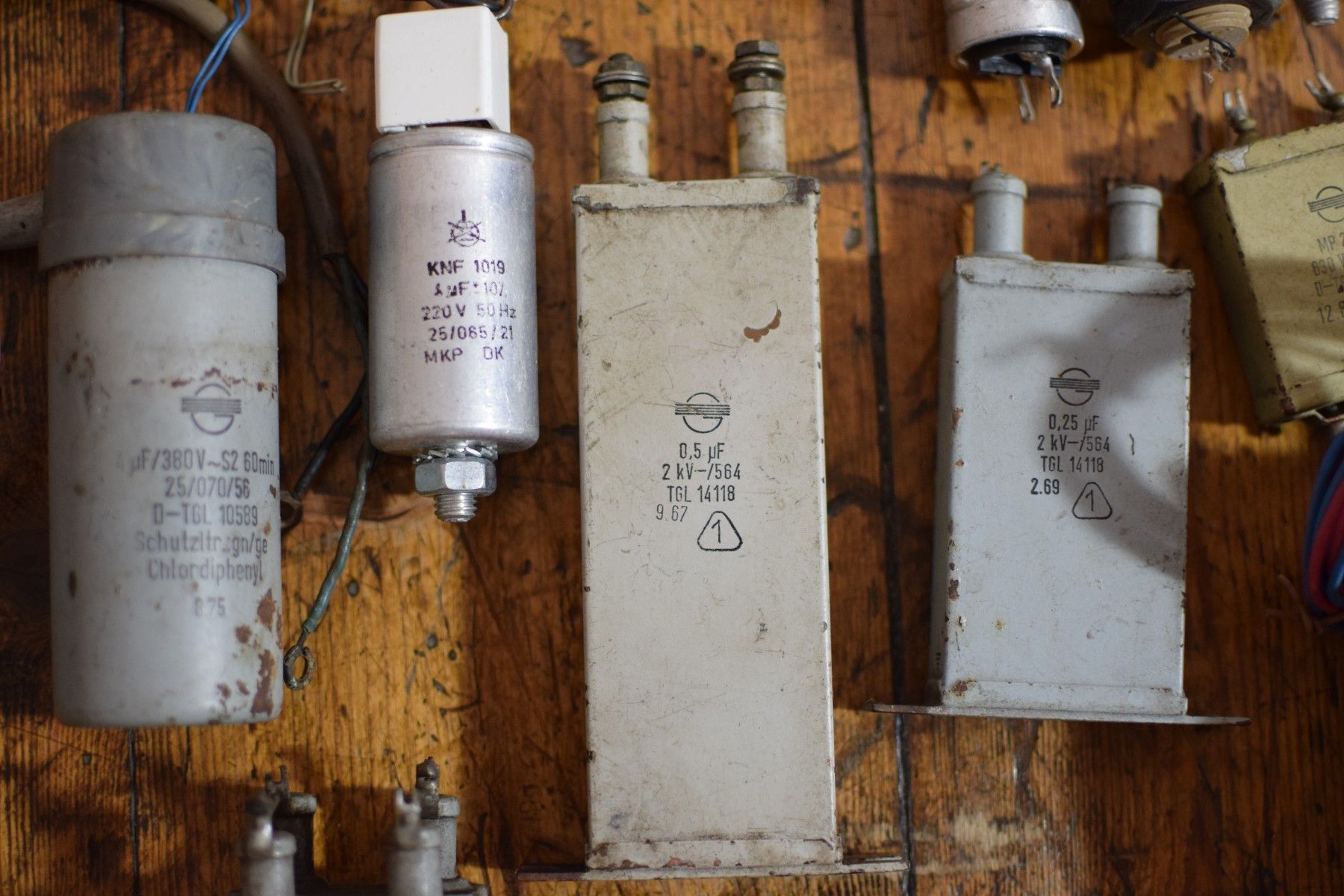 Konvolut von 45 historischen Kondensatoren aus der ehemaligen DDR mit Gebrauchsspuren, funktionsfähig Leistungsdetails soweit verfügbar, bitte den Fotos entnehmen Der Versand innerhalb Deutschlands ist kostenfrei und erfolgt per DHL Paket. Verkauf als Konvolut. Lieferumfang wie abgebildet.
