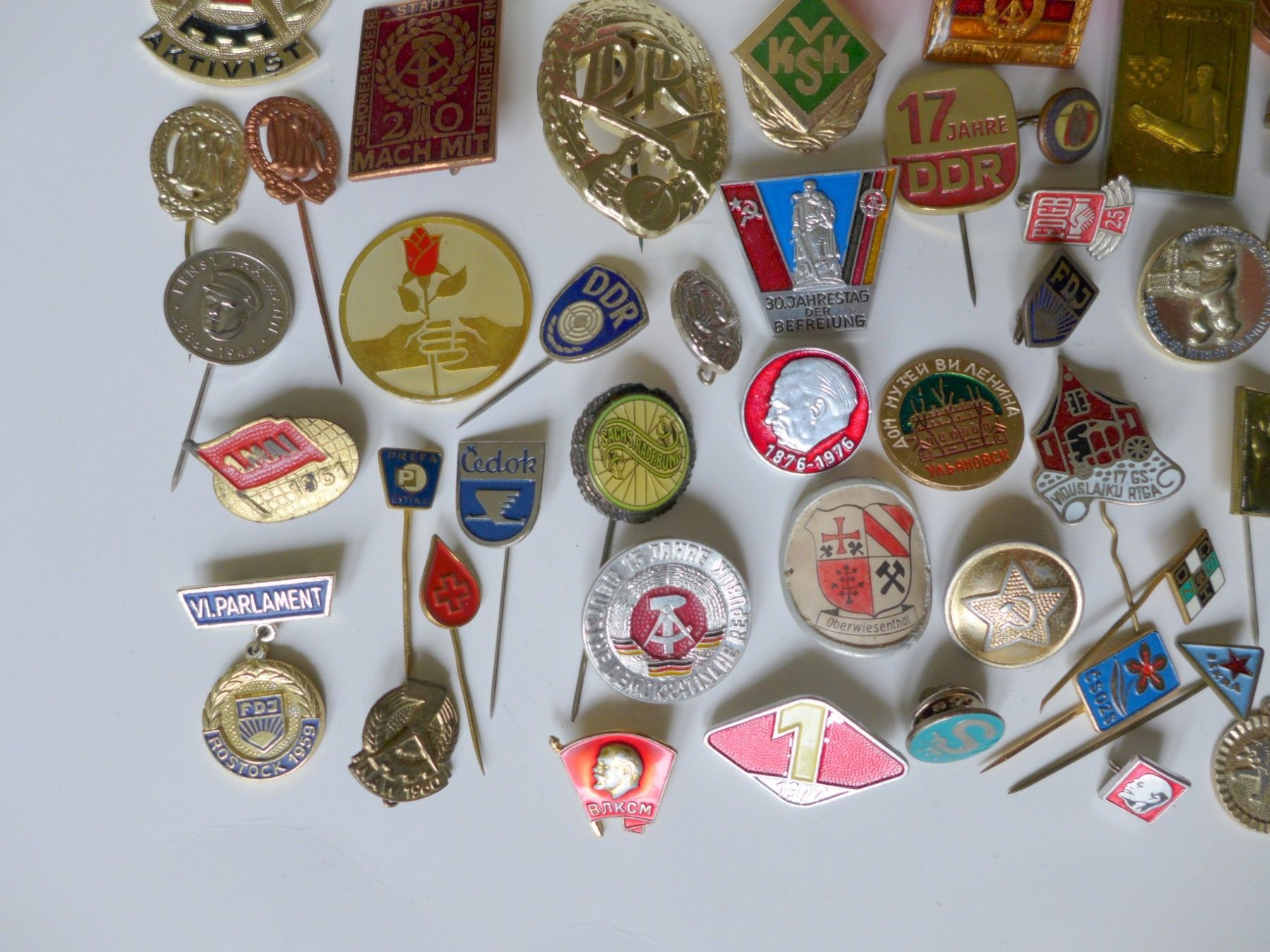 gebrauchter Zustand in unterschiedlicher Erhaltung , mit Gebrauchs- und Lagerspuren siehe Fotos , sie erhalten die hier abgebildeten Artikel , vorwiegend DDR - Abzeichen , UdSSR u.a. , ADP 125 original keine Kopie Das die Fotos sind Bestandteil der Artikelbeschreibung ! Alle Namen und Warenzeichen w