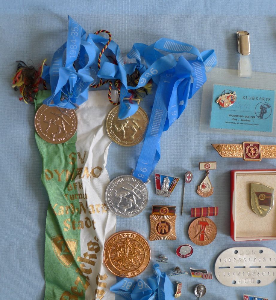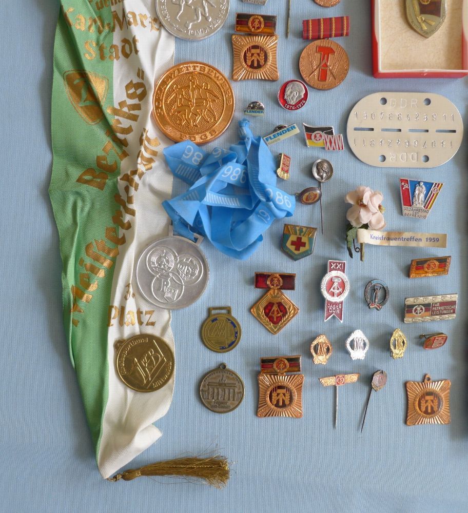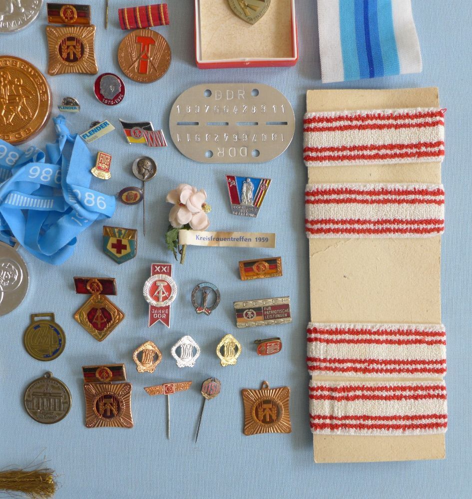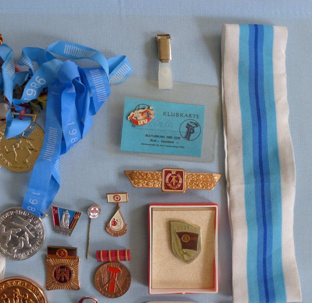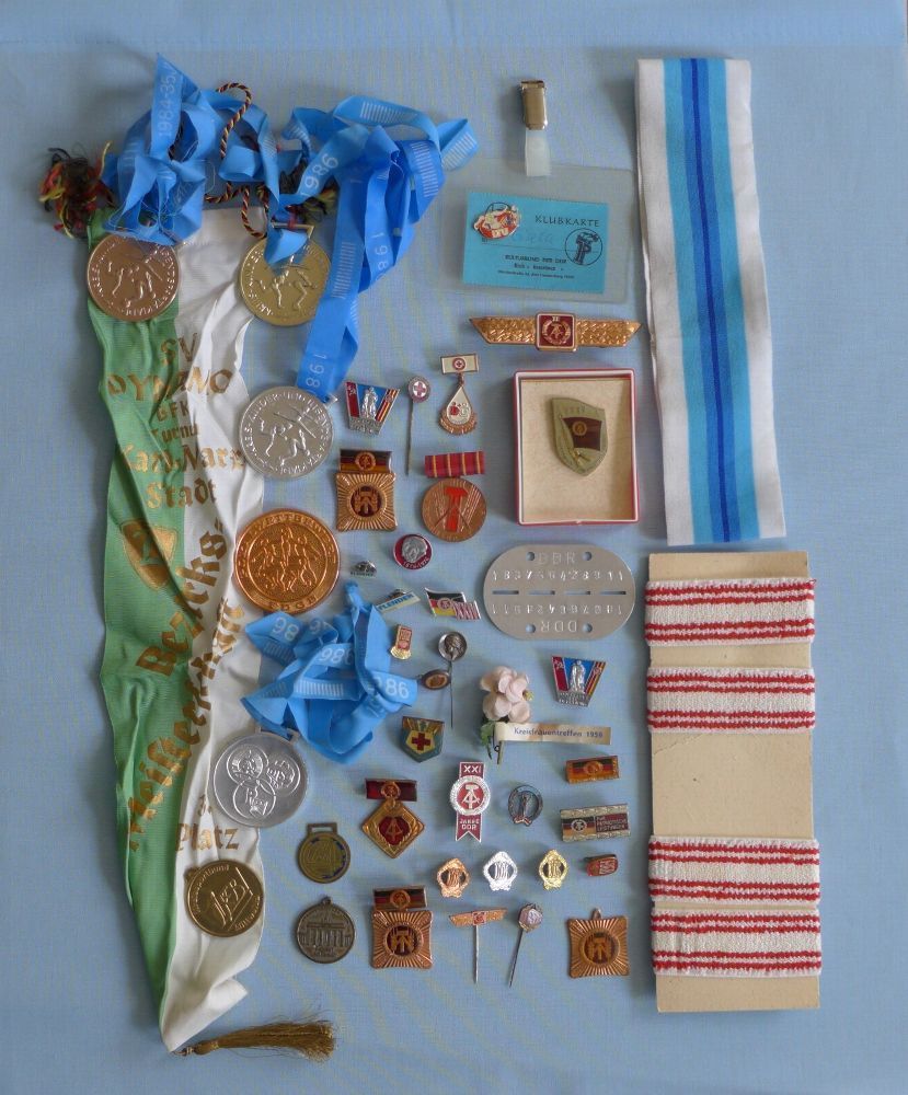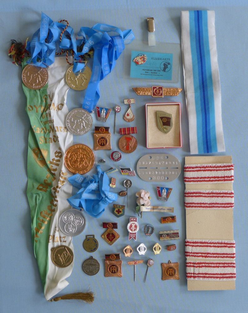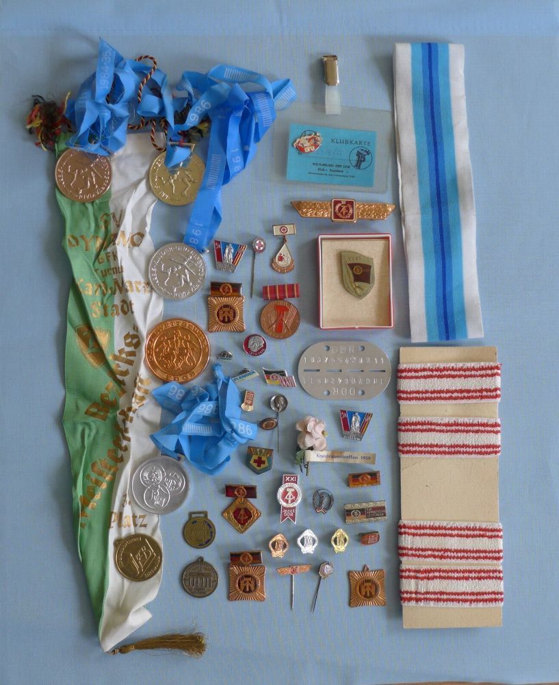 Konvolut DDR Abzeichen Orden Medaillen Wimpel Sport Armband Stirnband