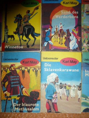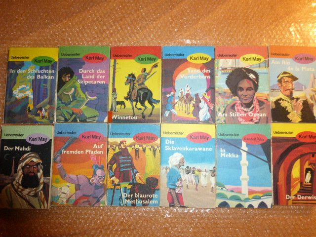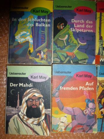 Konvolut Karl May, 12 Bände Ueberreuter Verlag 1.) In den Schluchten des Balkan 2.) Durch das Land der Skipetaren 3.) Der Schut 4.) Sand des Verderbens 5.) Am stillen Ozean 6.) Am Rio de la Plata 7.) Der Mahdi 8.) Auf fremden Pfaden 9.) Der blaurote Methusalem 10.) Die Sklavenkaravane 11.) In Mekka
