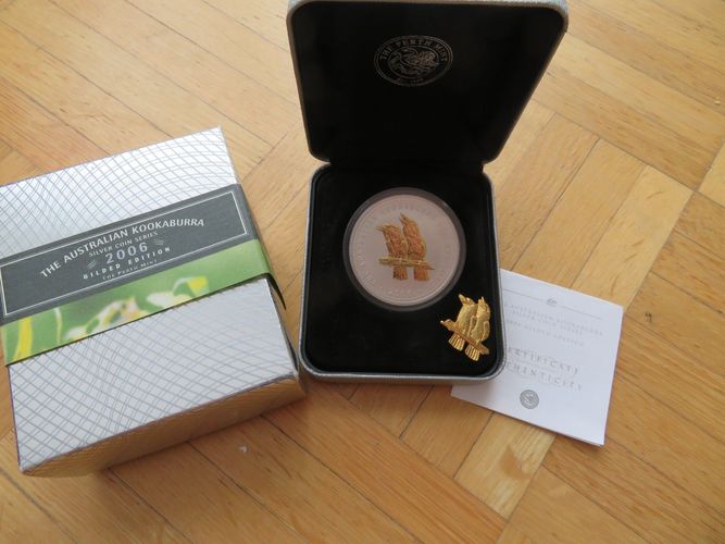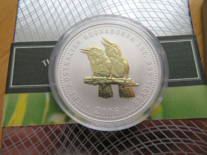 Kookaburra gilded 2006 mit Pin, Box und Zertifikat 1oz Silber