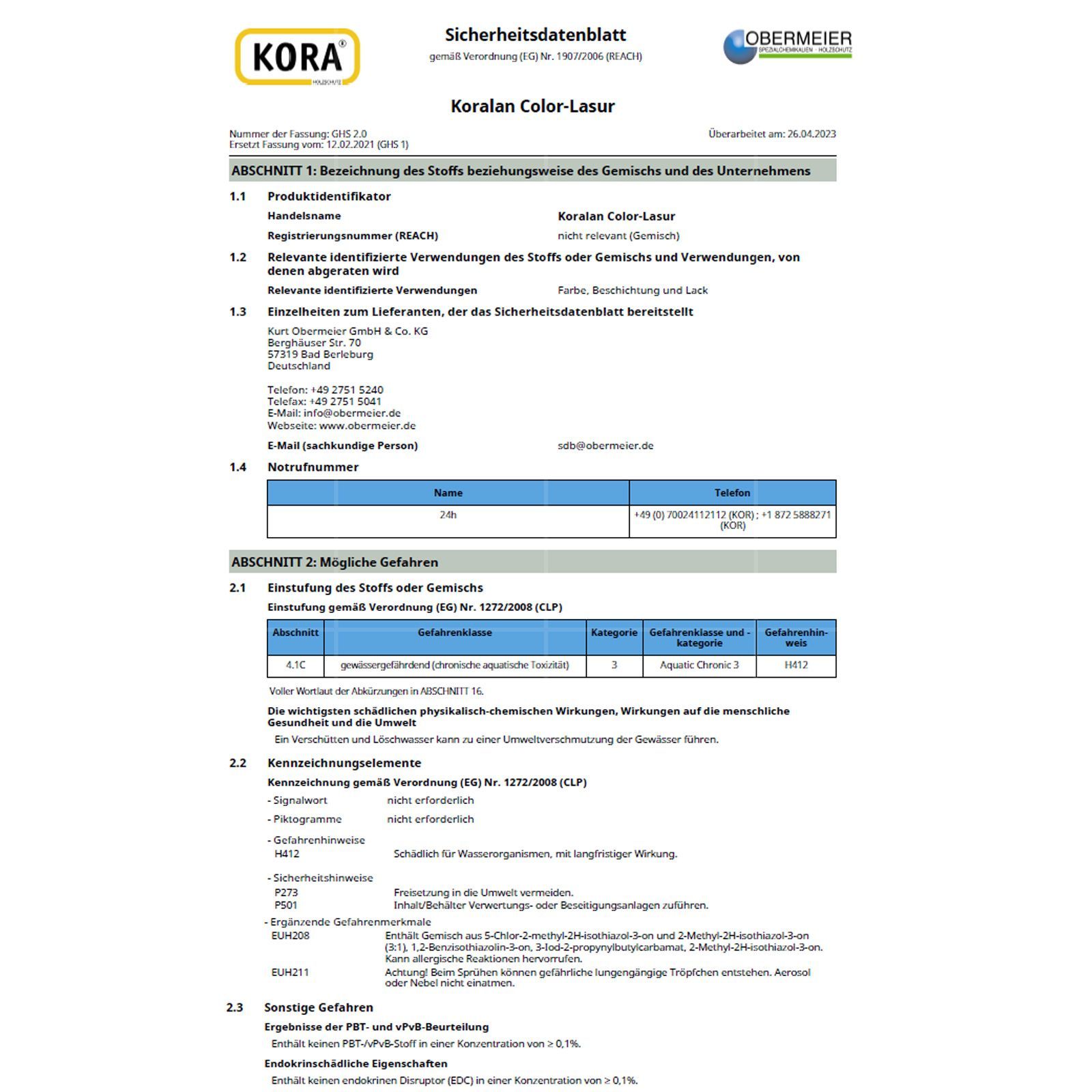 KORA Koralan Color-Lasur 0.75 LTR Holzlasur Wetterschutzlasur Holzschutzlasur