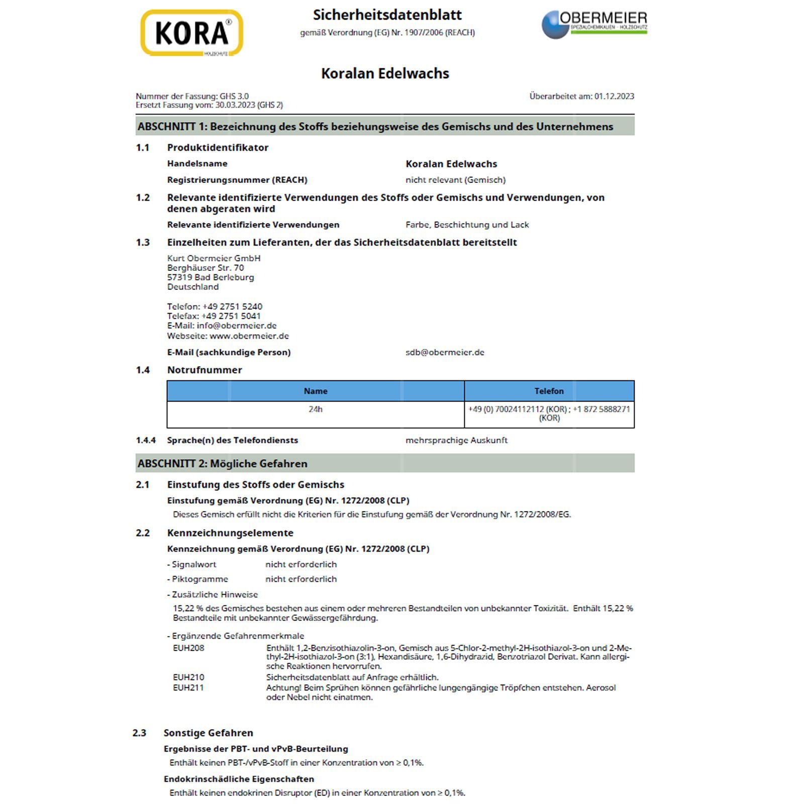 KORA Koralan Edelwachs 10 LTR Holzwachs polierbar Holzoberflächenveredelung Sonderton