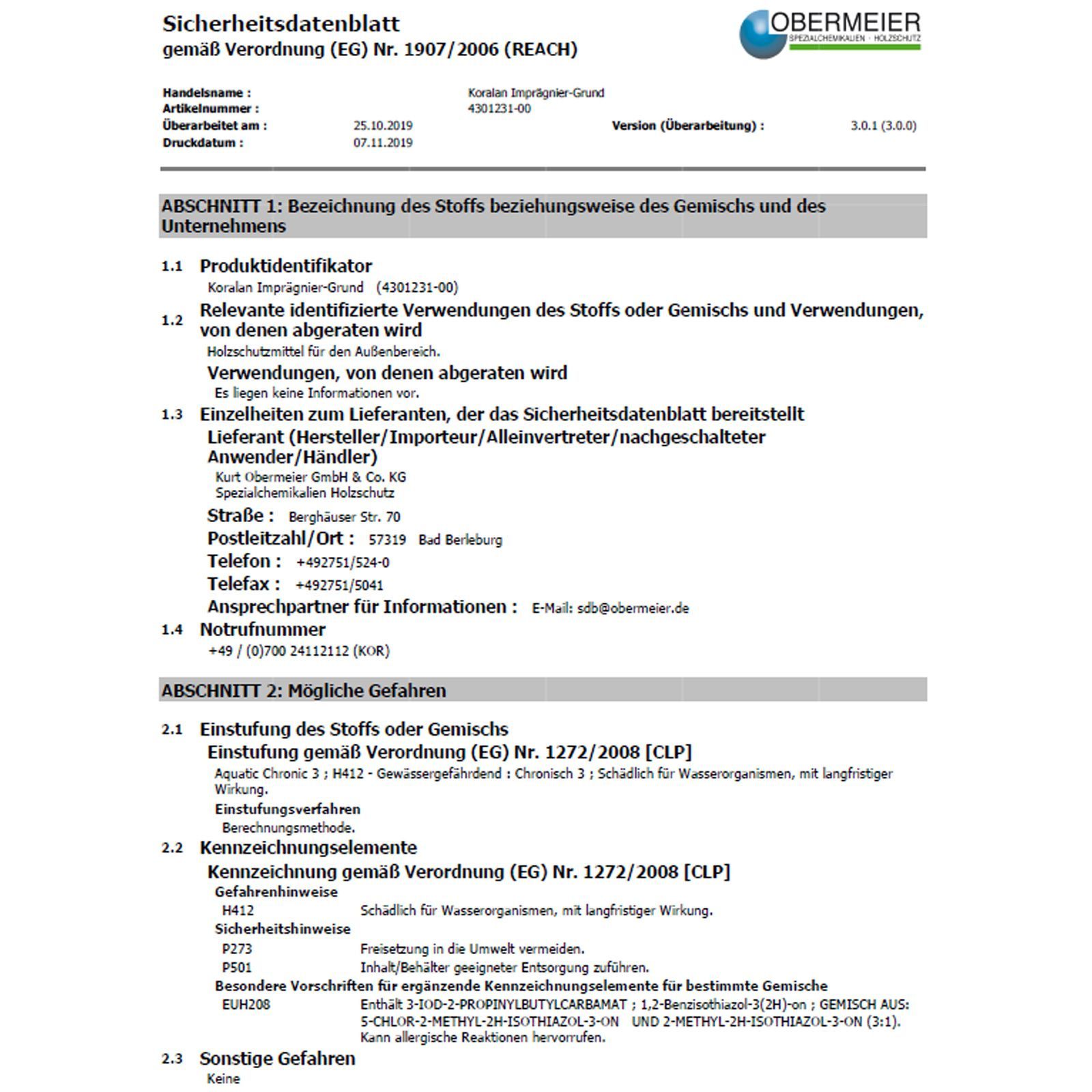 • Schädlich für Wasserorganismen, mit langfristiger Wirkung