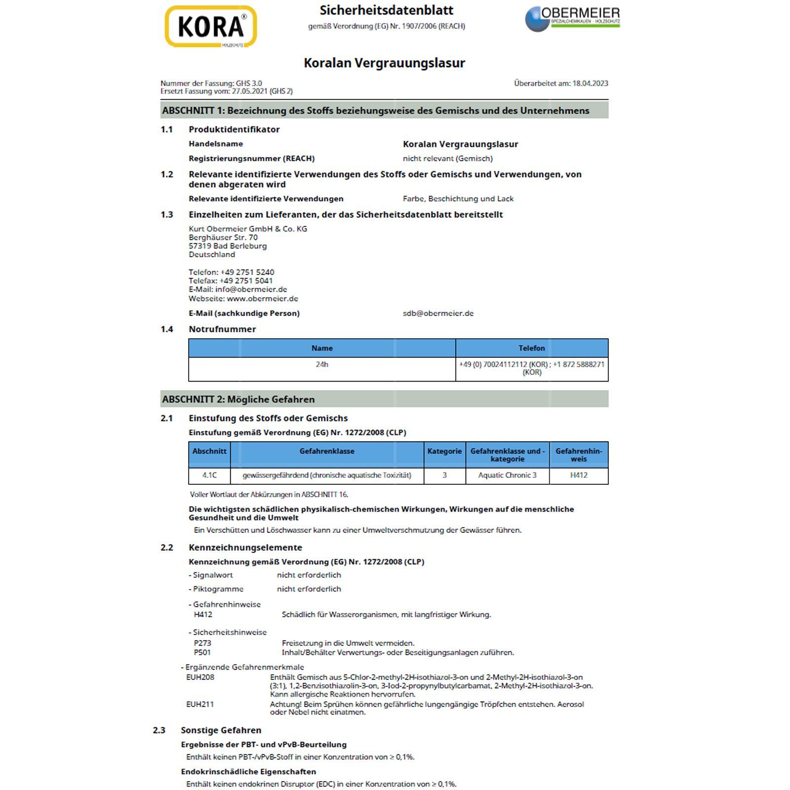 KORA Koralan Vergrauungslasur 10 LTR Holzlasur Holzschutzlasur Wetterschutzlasur