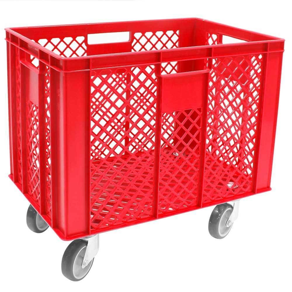 Korb mit 4 Lenkrollen, 83 Liter, 600x400x410/550 mm, Tragkraft ca. 120 kg, rot