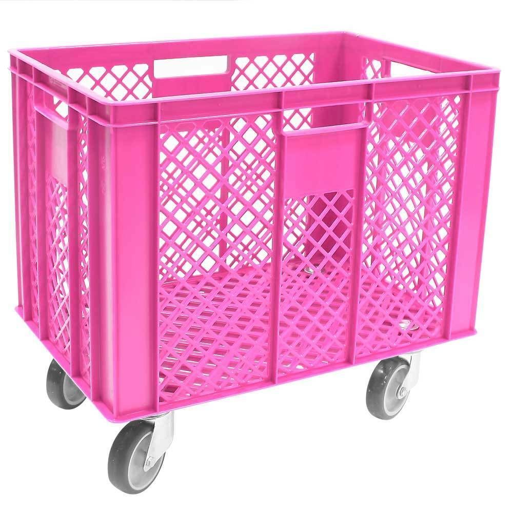 Korb mit 4 Lenkrollen, 83 Liter, 600x400x410/550 mm, Tragkraft ca. 60 kg, pink