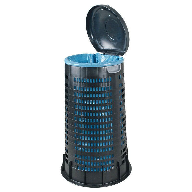 Besonders für den Außenbereich geeignet. Guter Schutz der Müllsäcke vor Beschädigungen, deshalb besonders geeignet für Märkte, Feste usw. Robust, wetterfest und rostfrei. Mit Klemmring für 120-Liter-Müllsäcke. Zum Entleeren wird das Gehäuse einfach angehoben, der Müllsack bleibt stehen. Material seh