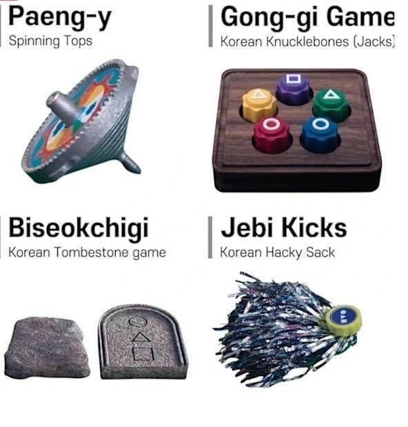 Gong-gi (koreanische Knöchelknochen) – Beginnen Sie das Spiel, indem Sie fünf Gong-gis auf den Boden werfen. Wählen Sie ein Gong-gi und werfen Sie es in die Luft. Während dieses Gong-gi in der Luft ist, schnappen Sie sich eins, das auf dem Boden liegt, bevor Sie das in der Luft fangen. Wiederholen S