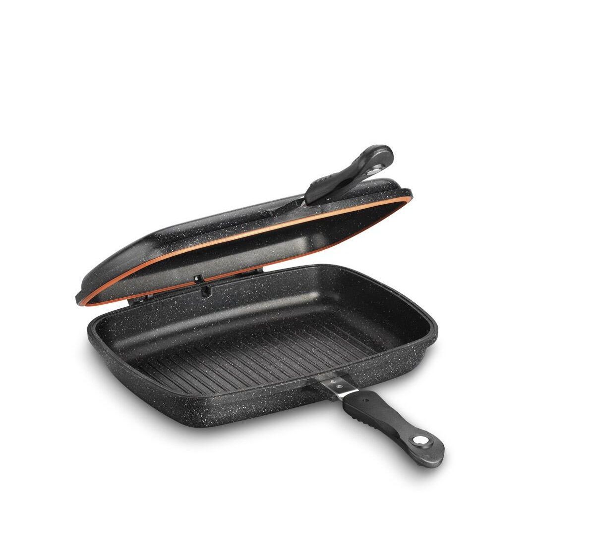 Korkmaz Korkmaz Duplo Doppelpfanne 34 x 25 cm, Schwarz - Langlebig & Antihaft