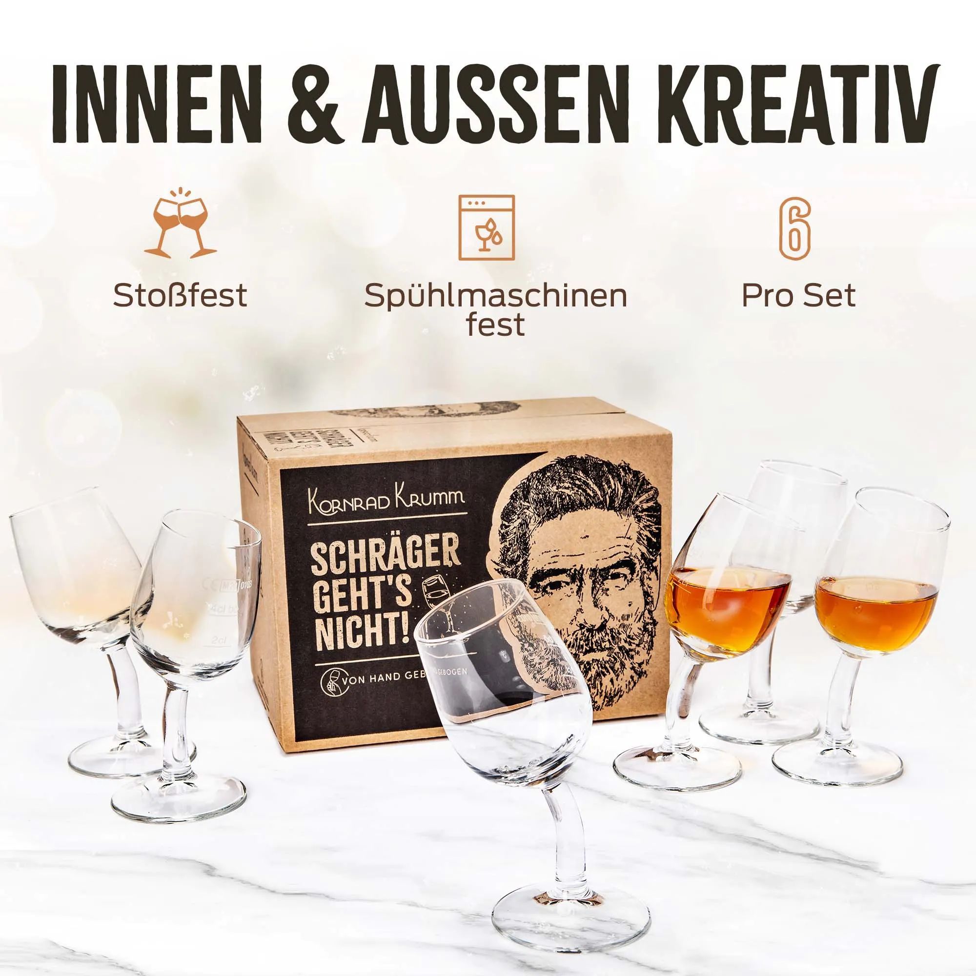 Kornrad Krumm Schnapsgläser Set Schräger geht´s nicht 6 Stück Set Oster Geschenk