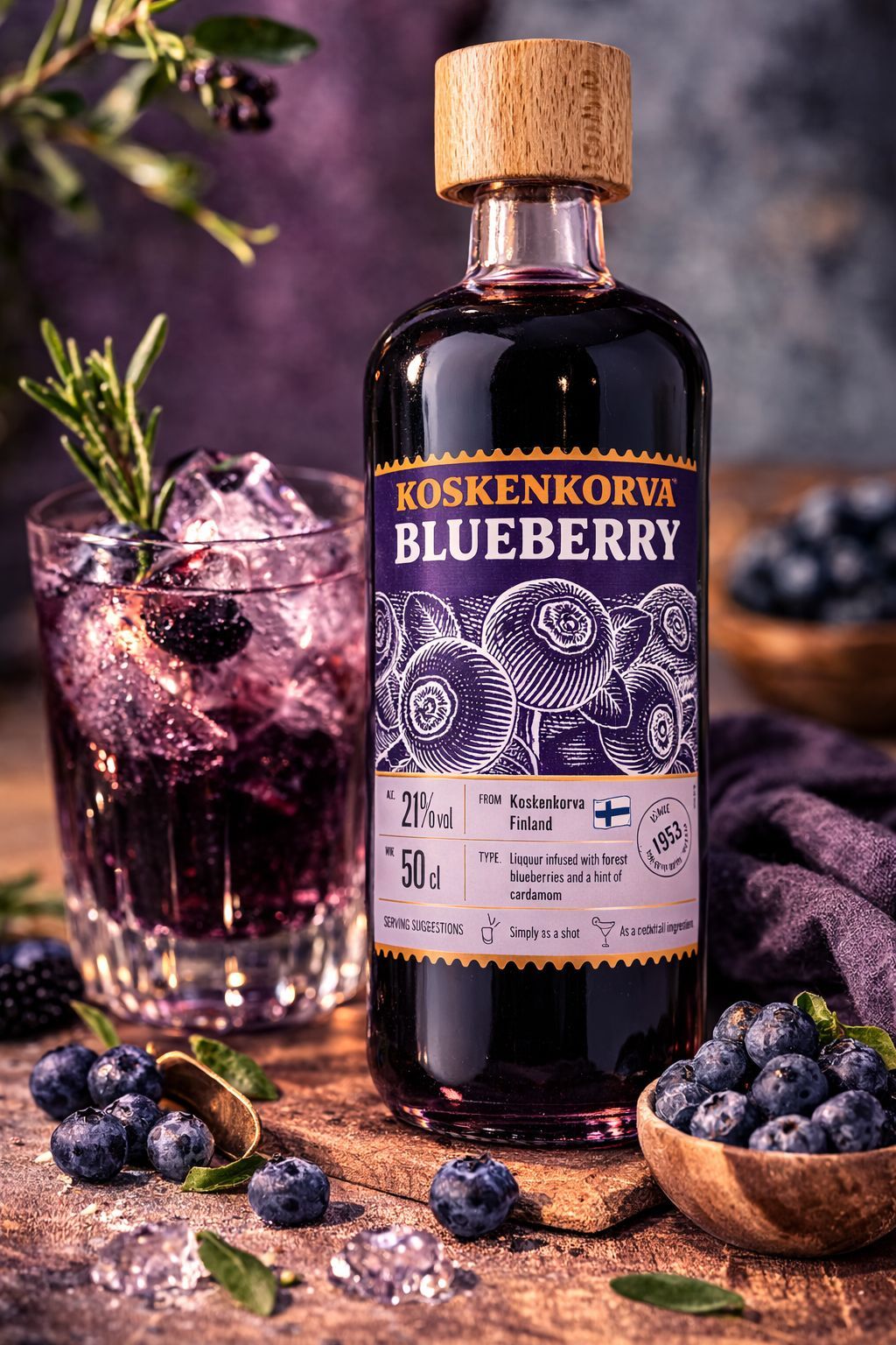 Koskenkorva Blueberry Likör 0,5L – Finnischer Likör mit Waldheidelbeeren & Kard