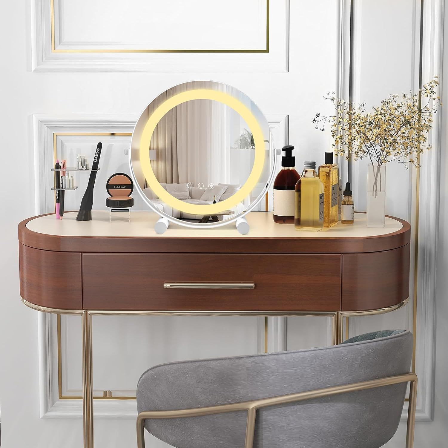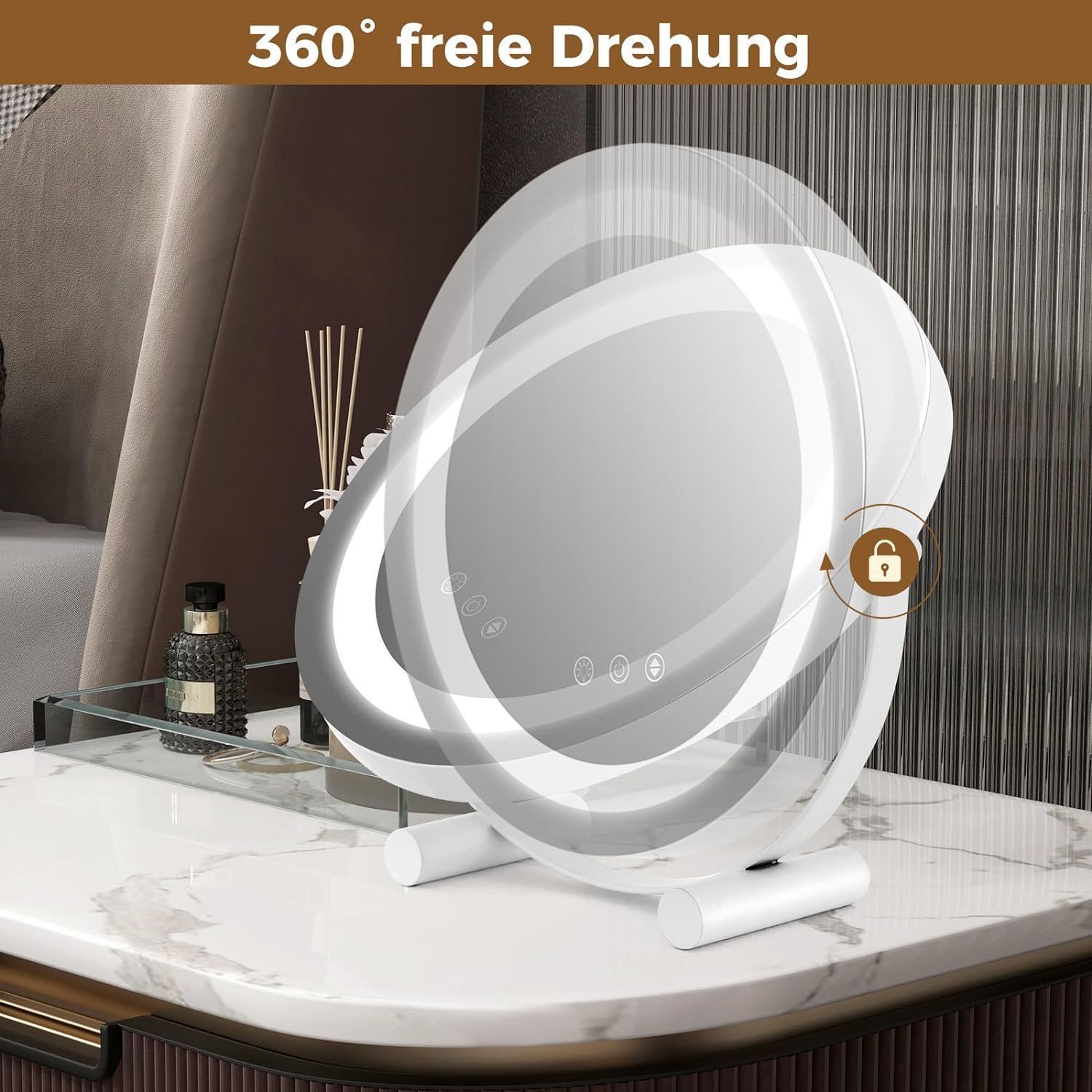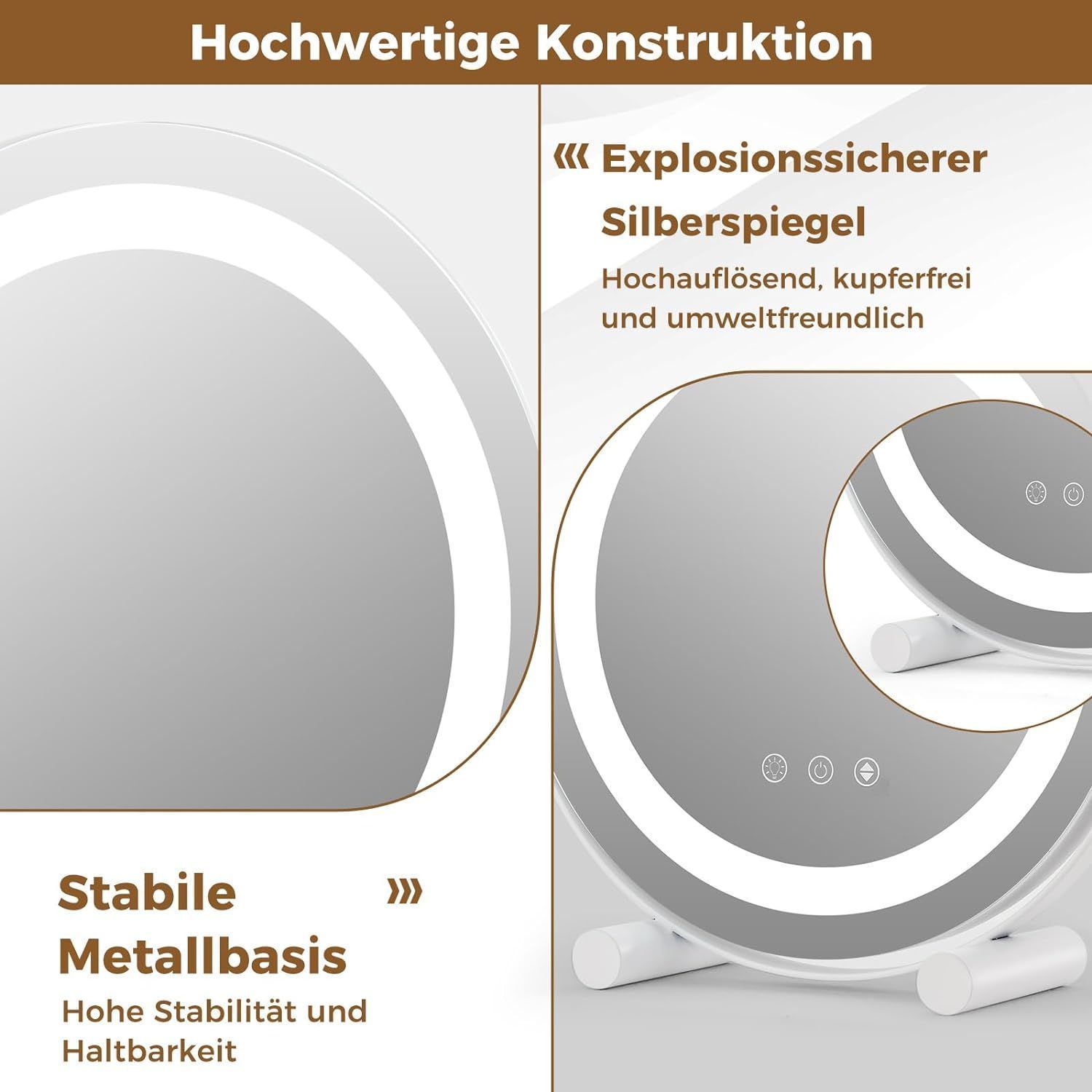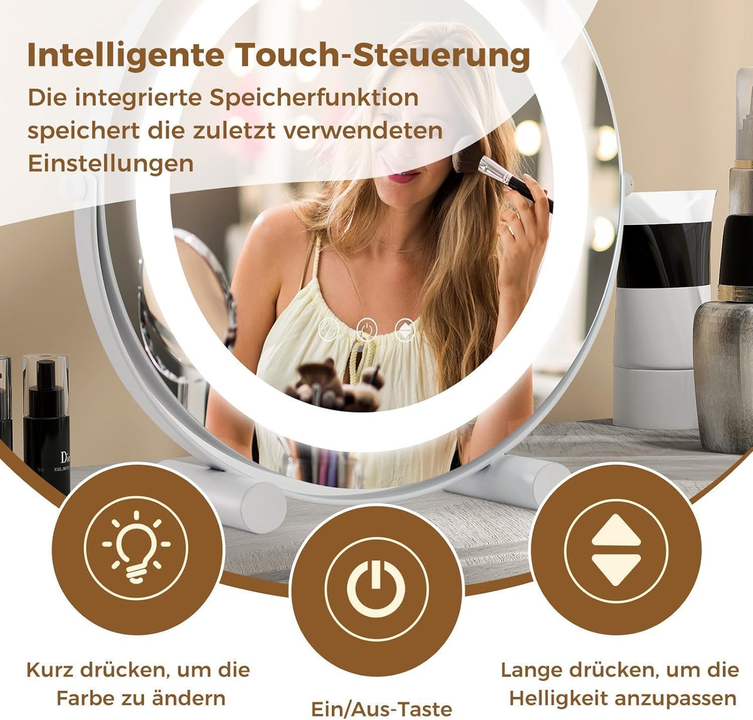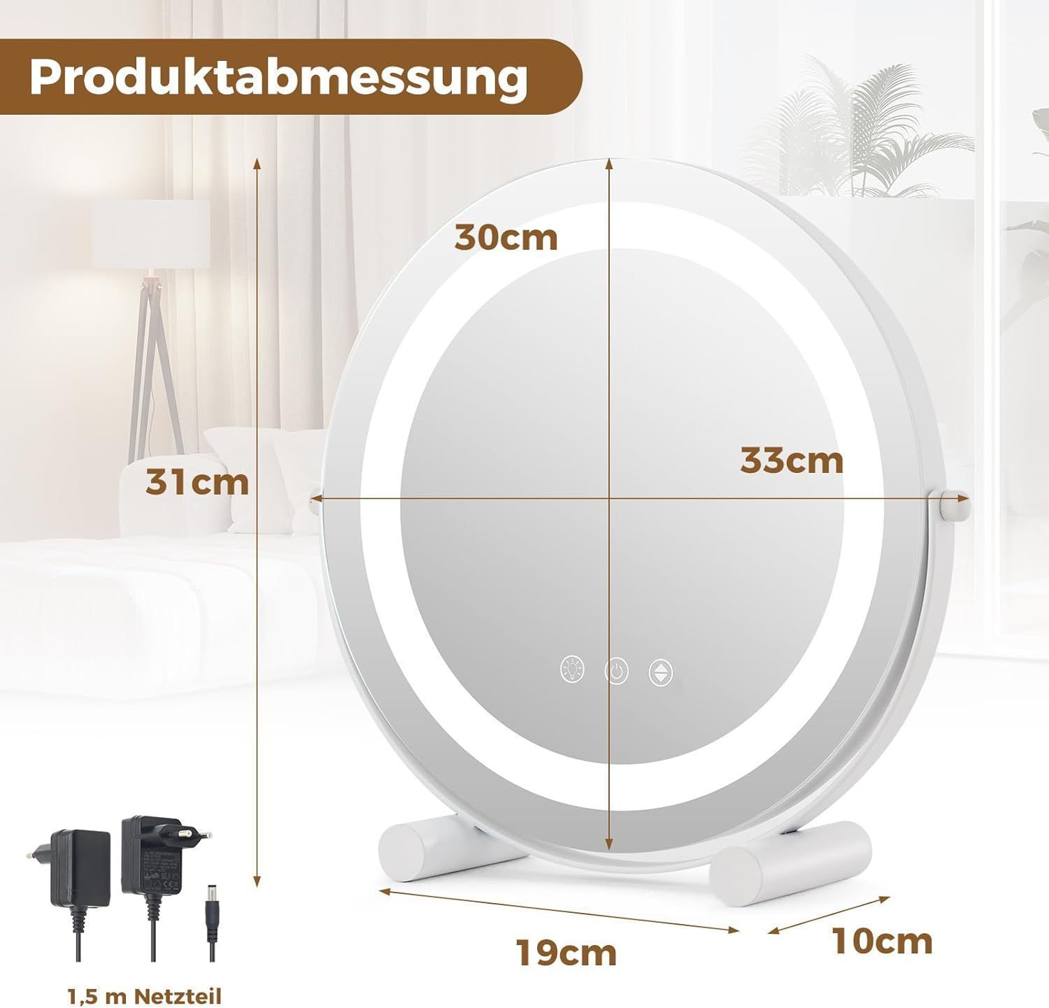 Kosmetikspiegel mit Beleuchtung, Schminkspiegel mit Touchschalter, 33 x 10 x 31 cm