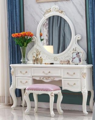 Weißer Schminktisch mit Schubladen Frisierkommode Luxus Kosmetiktisch