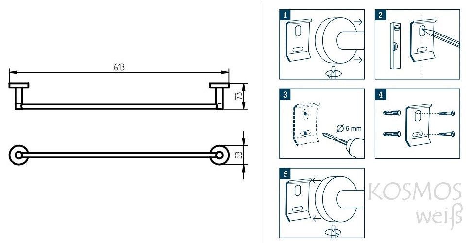 Haceka Kosmos White/ Weiss Handtuchhalter 60cm. Metall pulverbeschichtet
