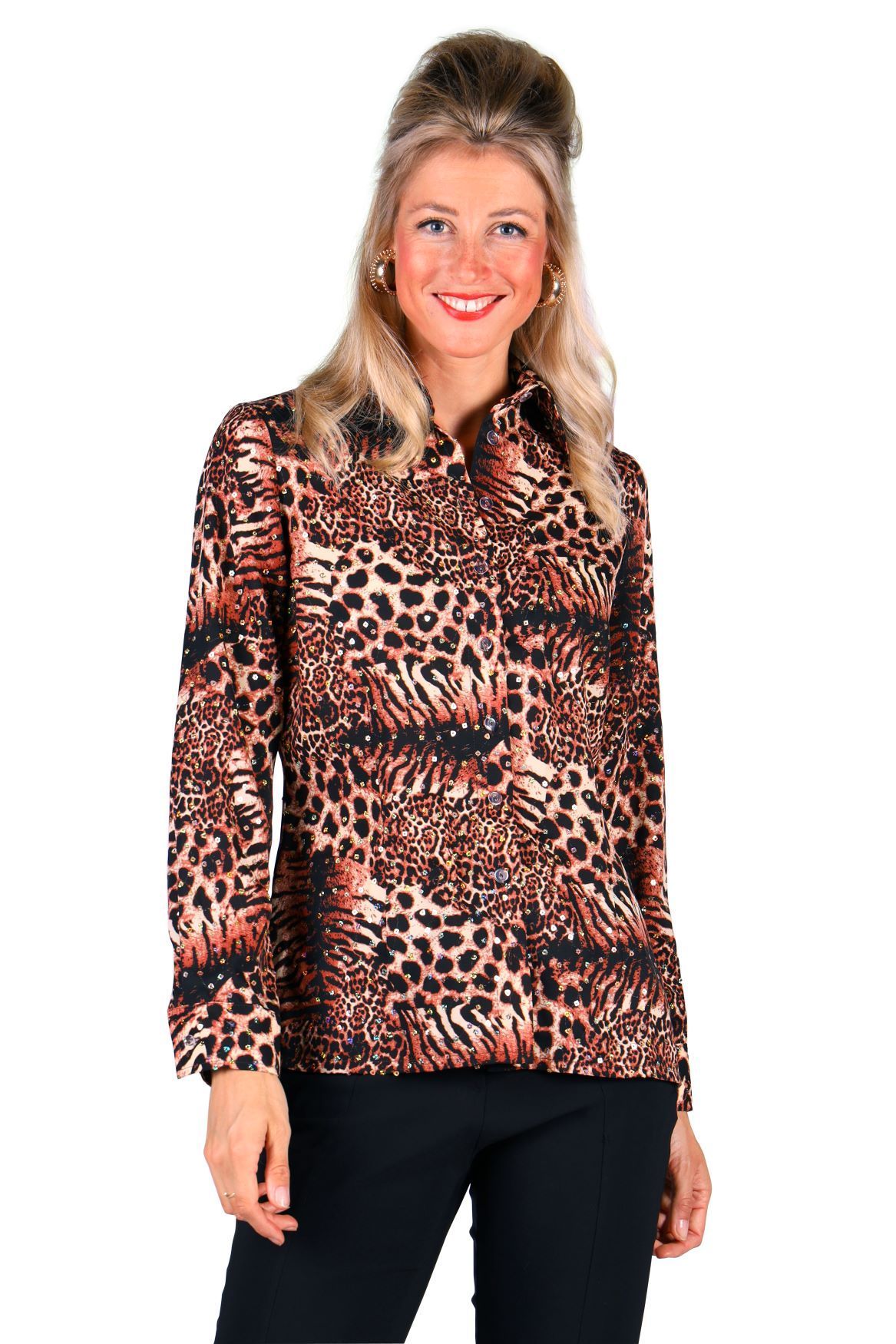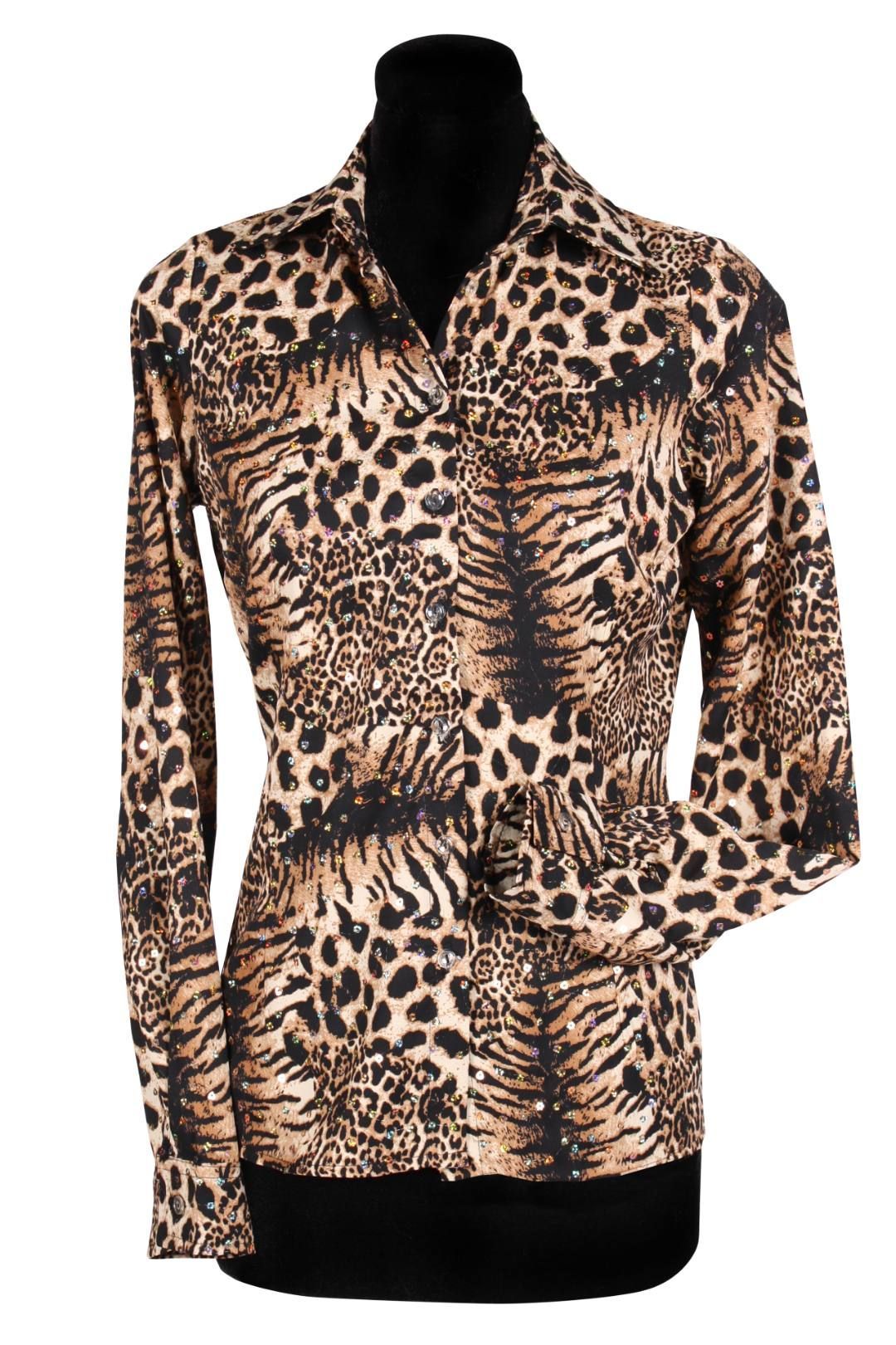 Kostüm Bluse Tiger Pailletten Dschungel Zoo Animal Tigerqueen Karneval Fasching
