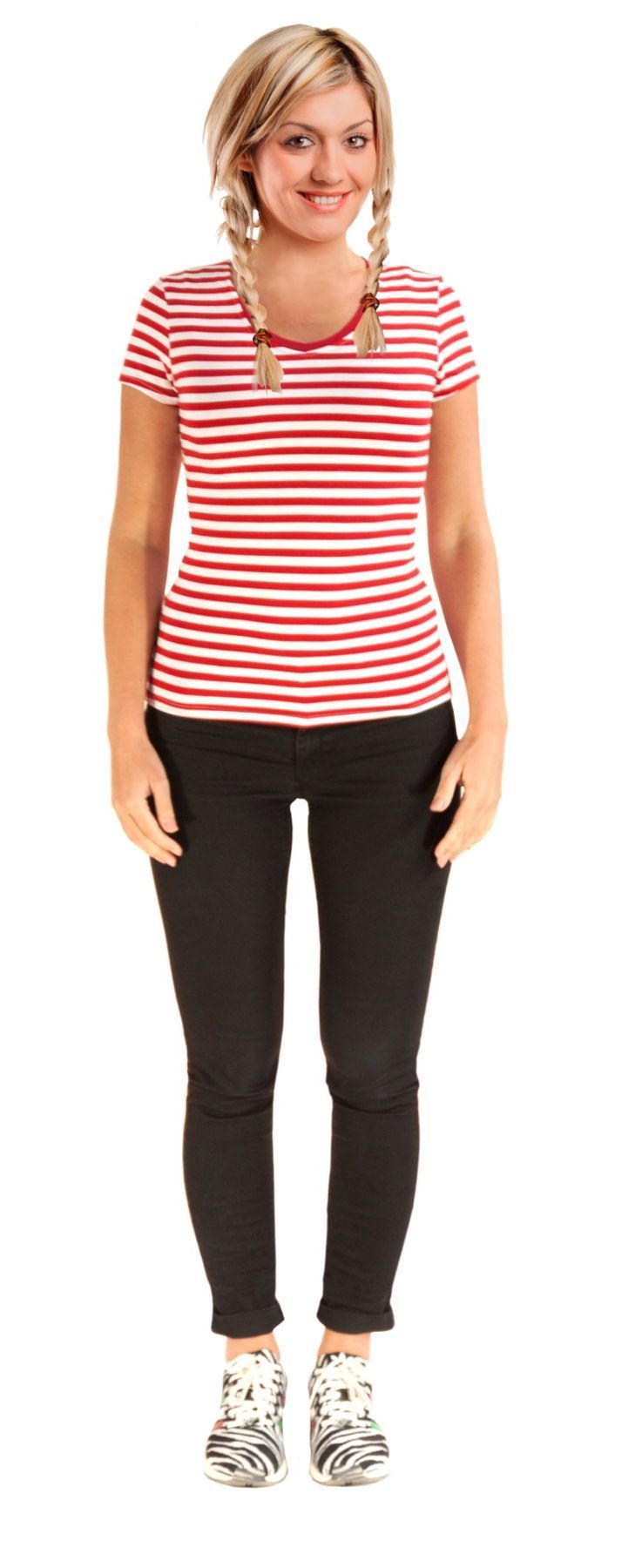 Kostüm Ringelshirt rot weiß Damen V-Neck Ringelhemd Köln Karneval Fasching