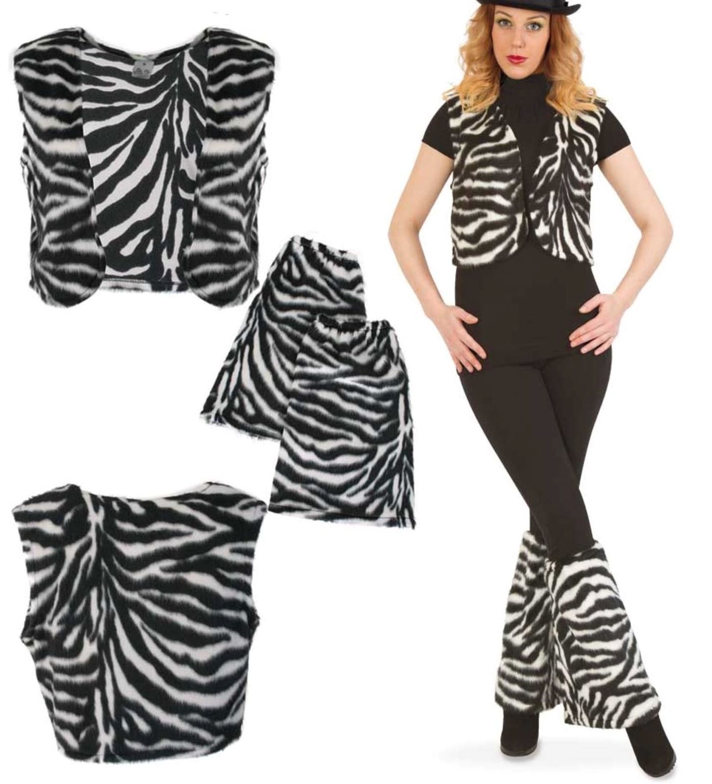 Kostüm Zebra Weste und Stulpen Tiere Zoo Dschungel Tierkostüm Karneval Fasching