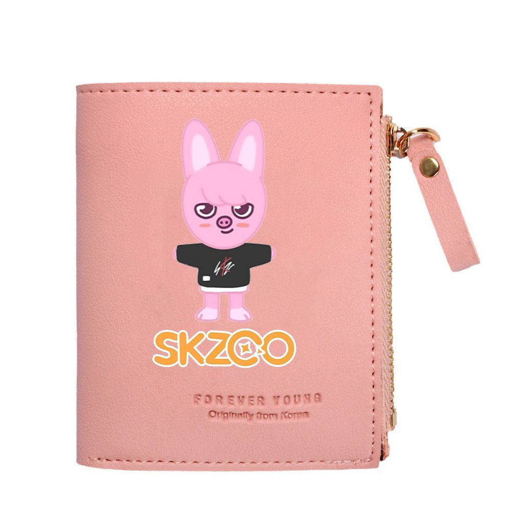 Kpop SKZOO kurze Portemonnaie Mädchen Geldbörsen Cartoon Kartenhalter Rosa