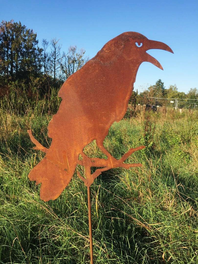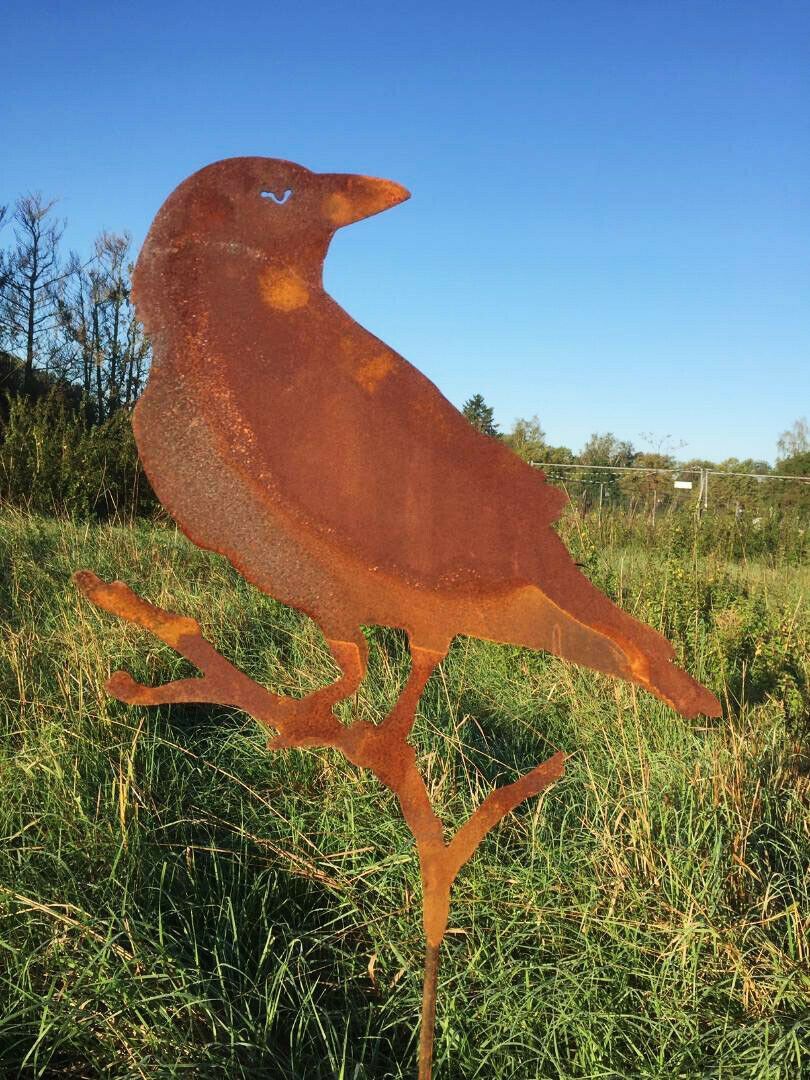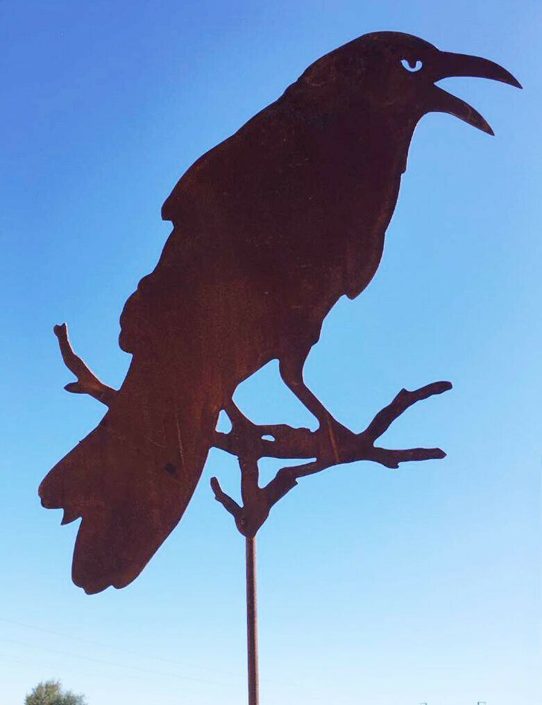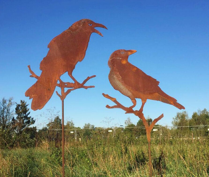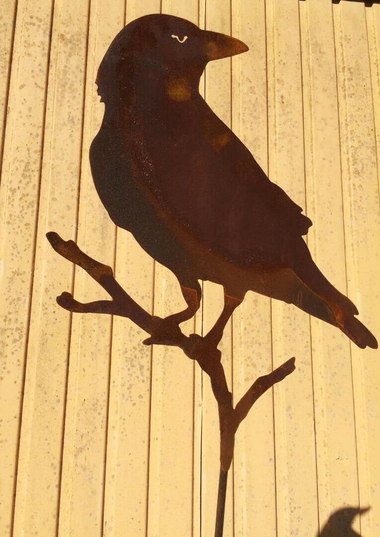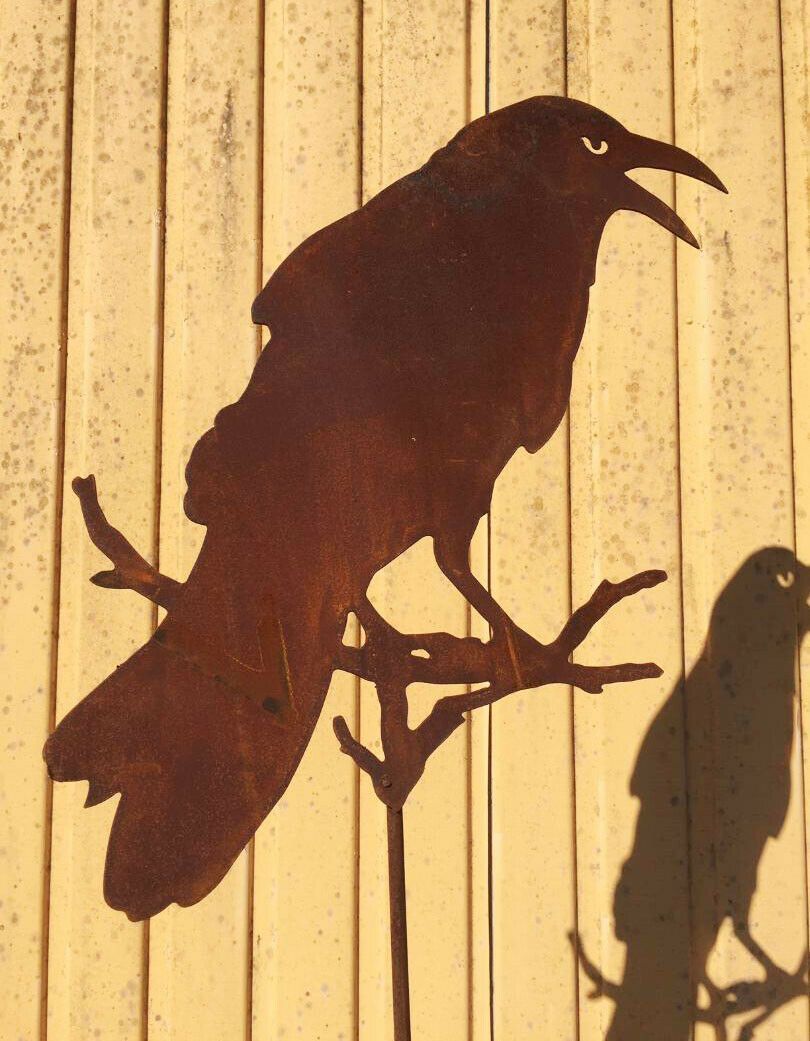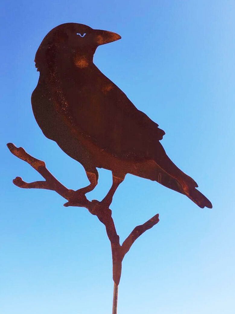 Krähe und oder Rabe auf Ast sitzend Edelrost Gartenstecker nach Wahl Diese Vögel sind eine schöne Dekoration für Ihren Garten. Jedes Stück ist in Handarbeit gefertigt und somit ein Unikat, daher kann auch die Edelrostpatina variieren. Material: aus stabilem Stahlblech mit Edelrost zum Stecken. Sehr