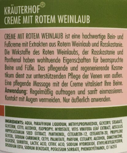 Kräuterhof Creme mit rotem Weinlaub - Bein und Fußcreme - 250 ml (Gr. 250 ml)