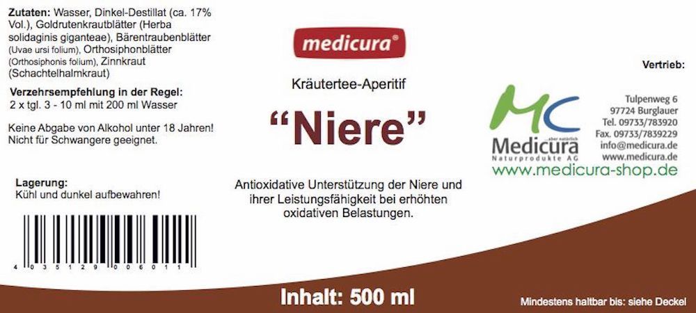 Medicura Kräutertee-Aperitif-Niere - 500 ml Glasflasche