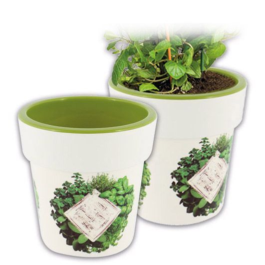 Kräutertopf mit IML - Kräuter Motiv - H=12cm, d=10,3 cm