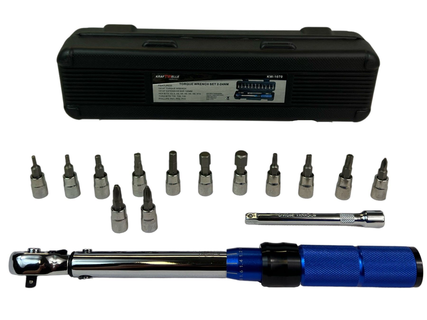 Kraftwelle 1/4 Zoll Fahrrad&Motorrad Drehmomentschlüssel Bit Set 2-24 NM Hex Torx PH