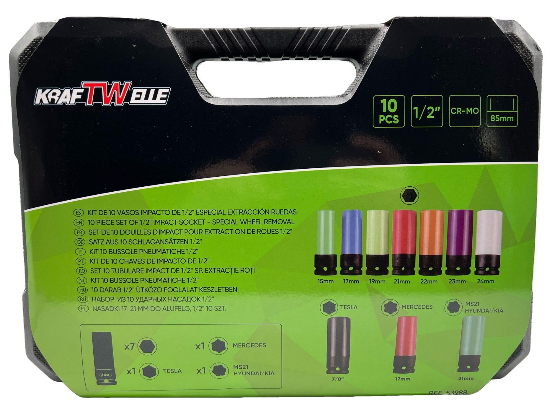 Kraftwelle 10 teiliges 1/2 Zoll Schlagnuss Kraftnuss StecknussSet für Schlagschrauber