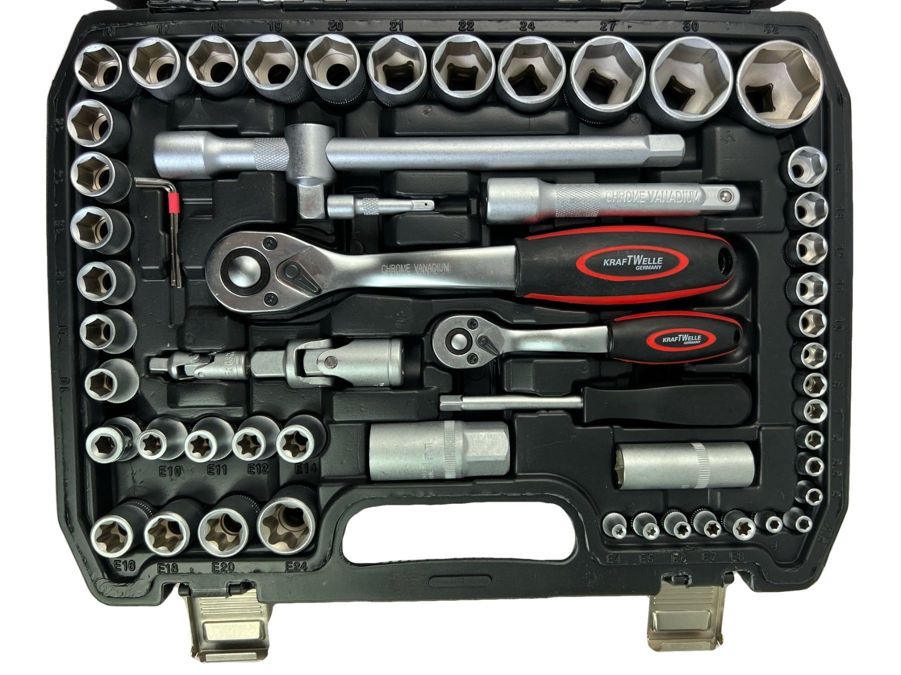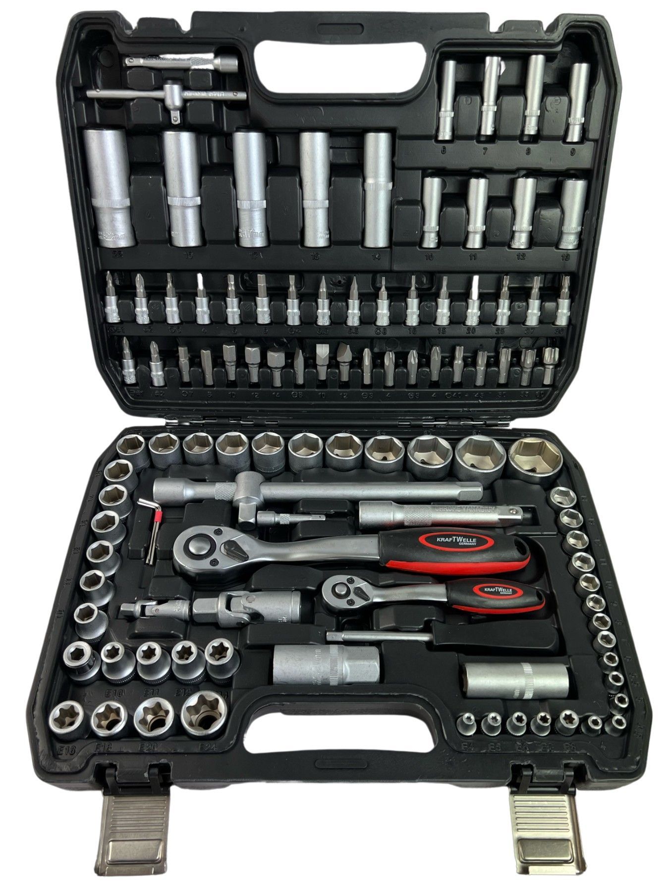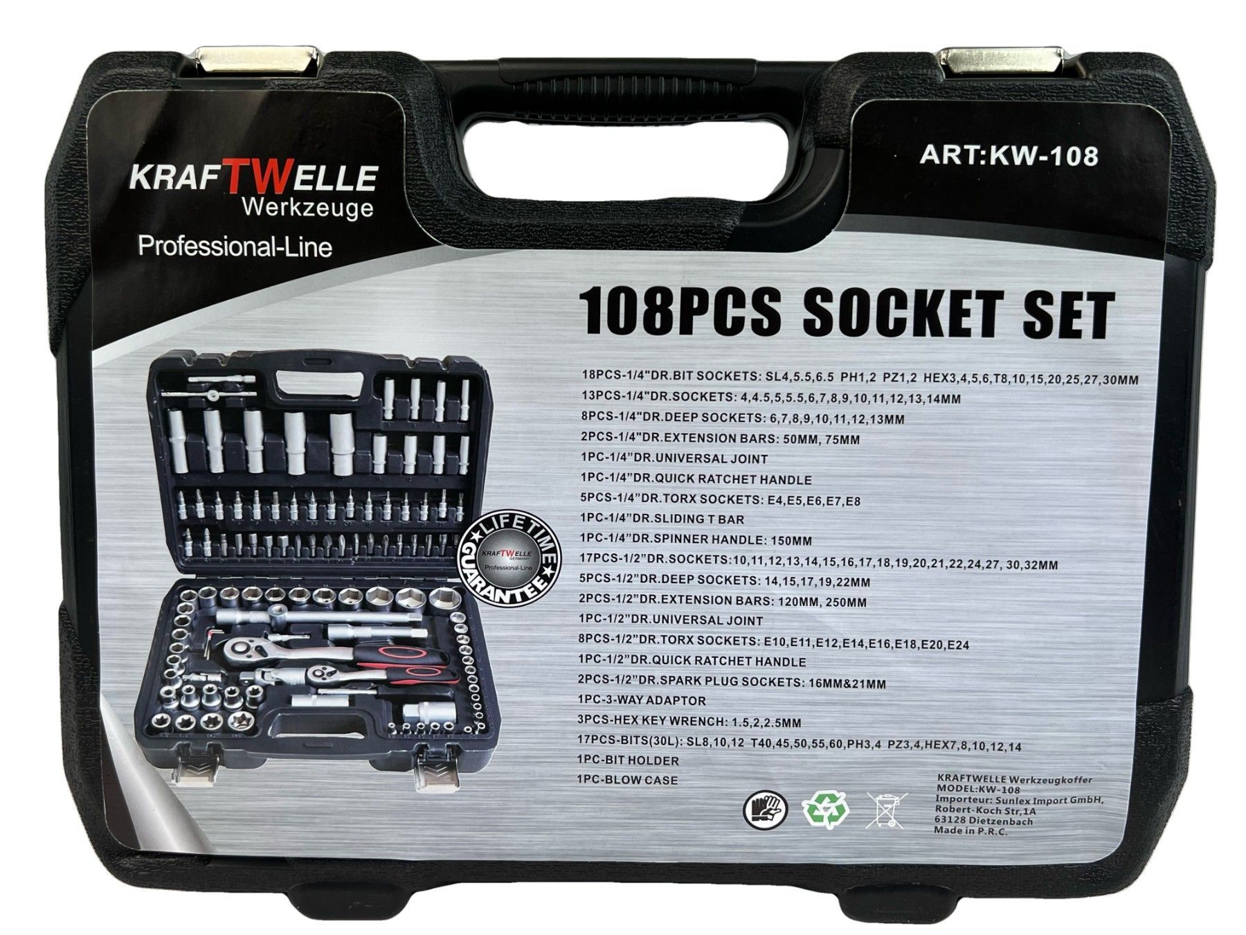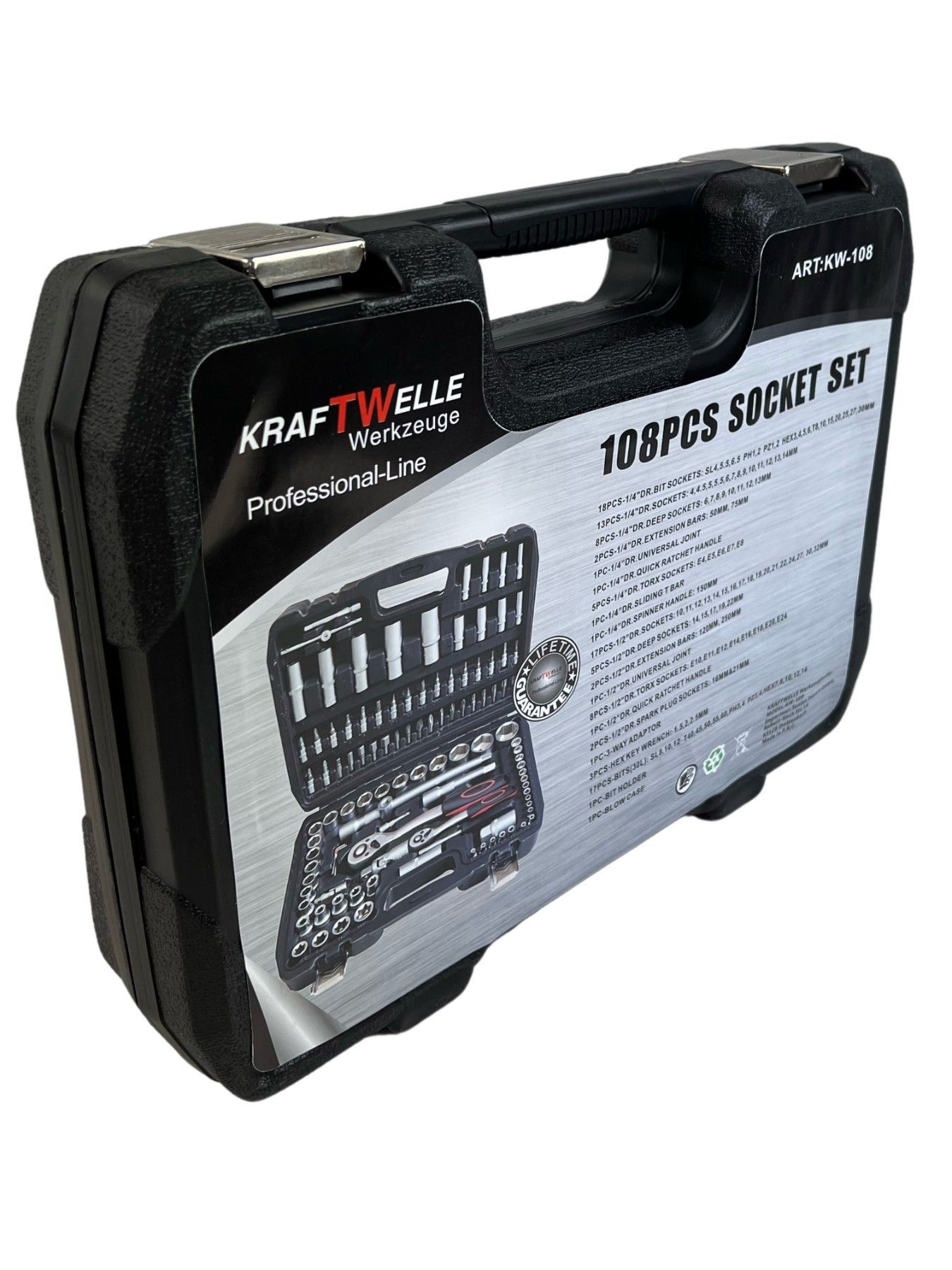 Kraftwelle 108 teiliger Profi Steckschlüssel Satz Werkzeugkoffer CR-V Stahl Knarre