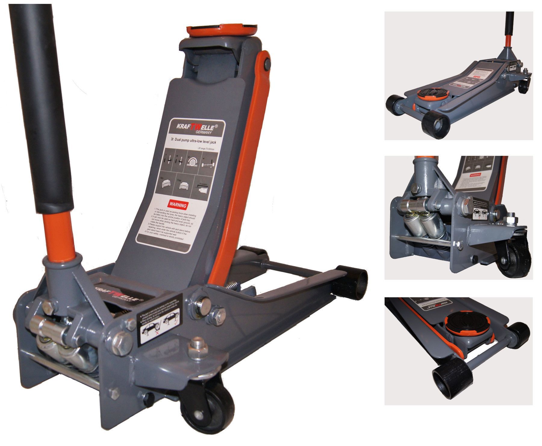 Kraftwelle 3T Rangierwagenheber Wagenheber Doppelkolben KW-4T 75-500 mm