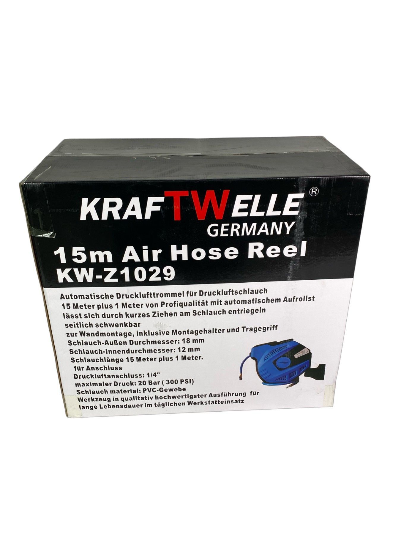 Kraftwelle Druckluft Schlauchtrommel Automatik-Aufrollung 15m Drucklufttrommel Garage